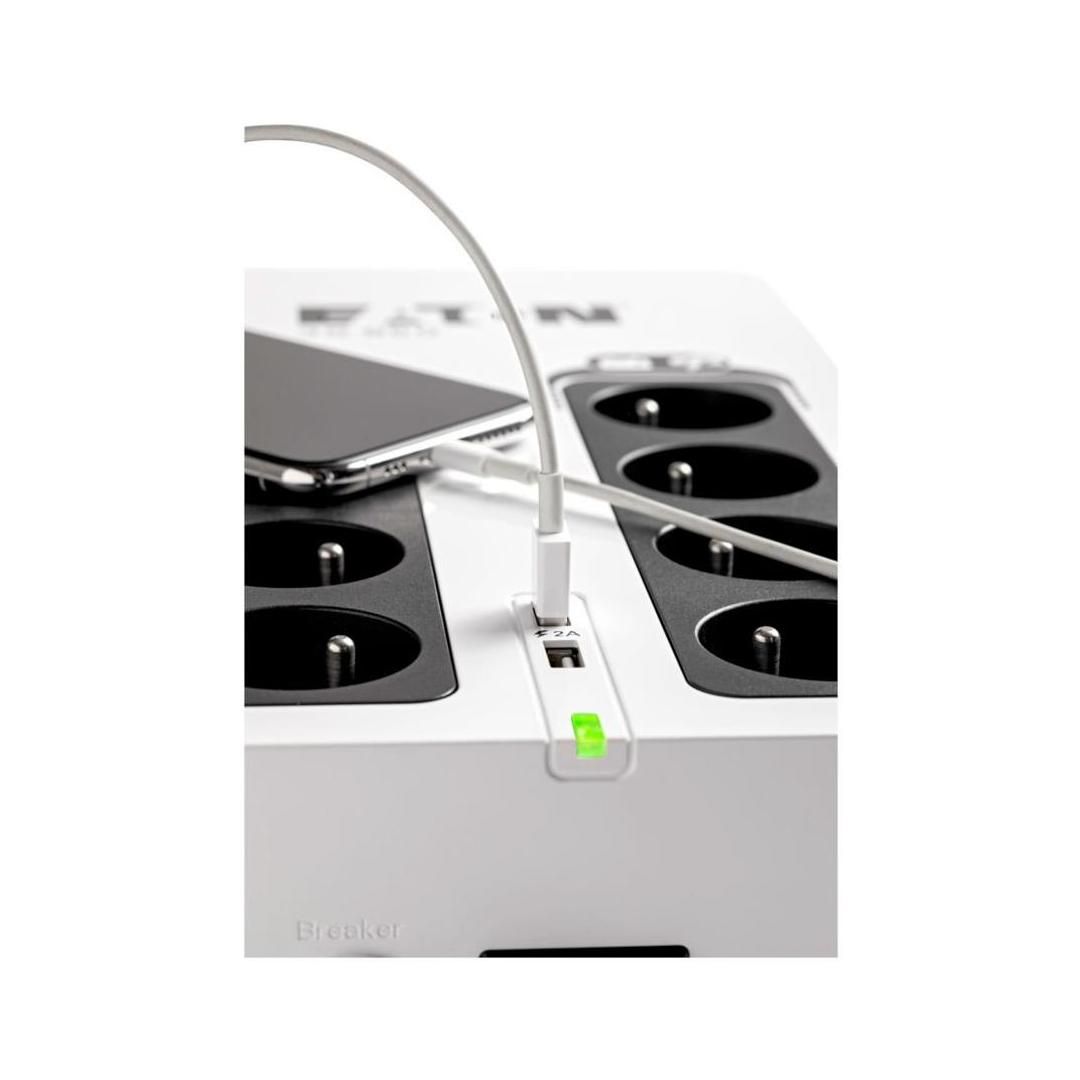 Eaton 3S850D. UPS topology: Standby (Offline), Output power capacity: 0.85 kVA, Output power: 510 W. AC outlet types: Type F, AC outlets quantity: 8 AC outlet(s). Battery technology: Sealed Lead Acid (VRLA). Product colour: Black, White, Cable length: 1.5 m. Certification: CE/EAC/Ukr/Cm/CB report