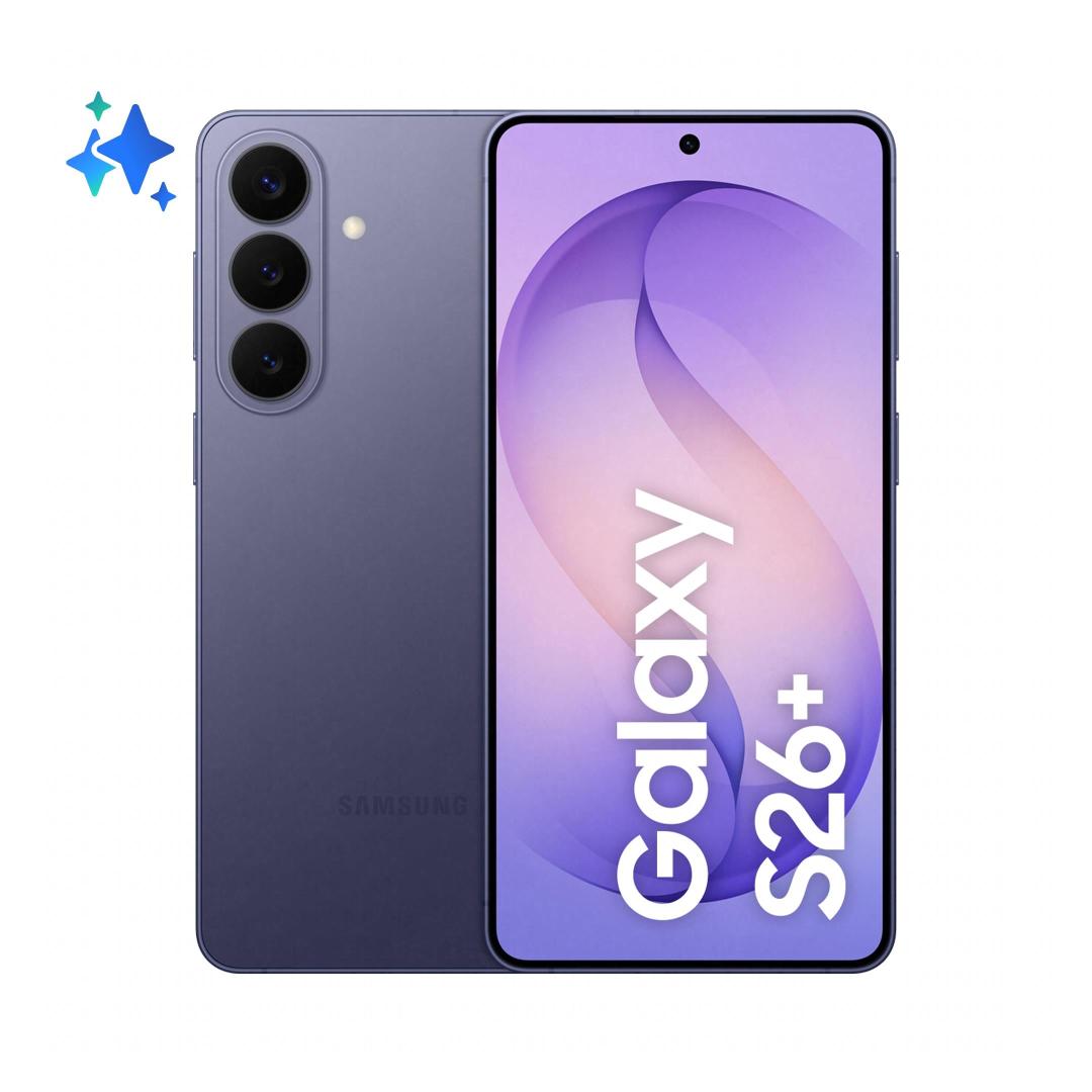 Samsung Galaxy S26+ . Display diagonal: 17 cm (6.7"), Display resolution: 3120 x 1440 pixels. Processor family: Samsung Exynos, Processor model: 2600. RAM capacity: 12 GB, Internal storage capacity: 256 GB. Rear camera resolution (numeric): 50 MP, Rear camera type: Triple camera. SIM card capability: Dual SIM. Operating system installed: Android 16.0. Battery capacity: 4900 mAh. Product colour: Violet. Weight: 190 g
