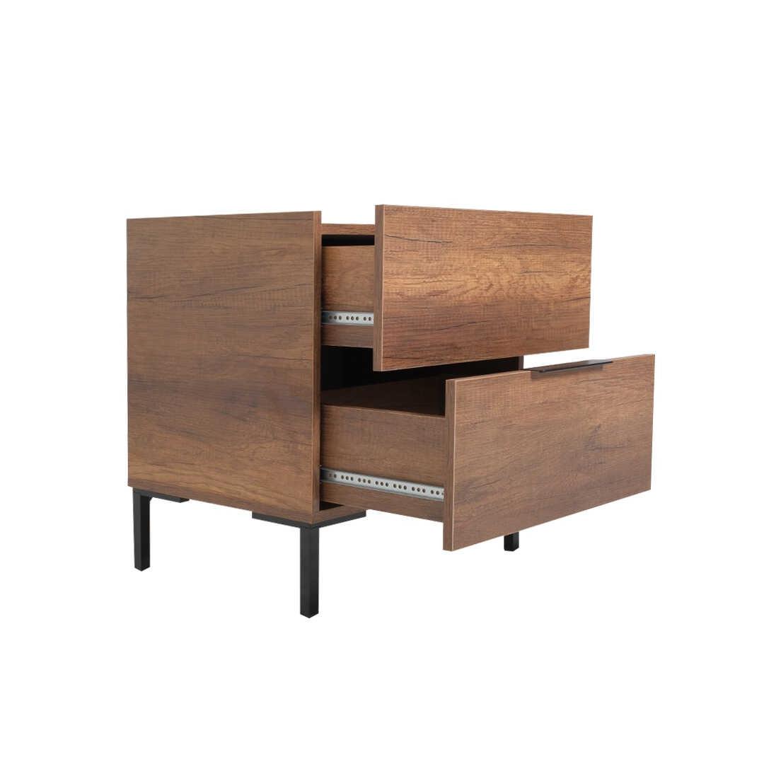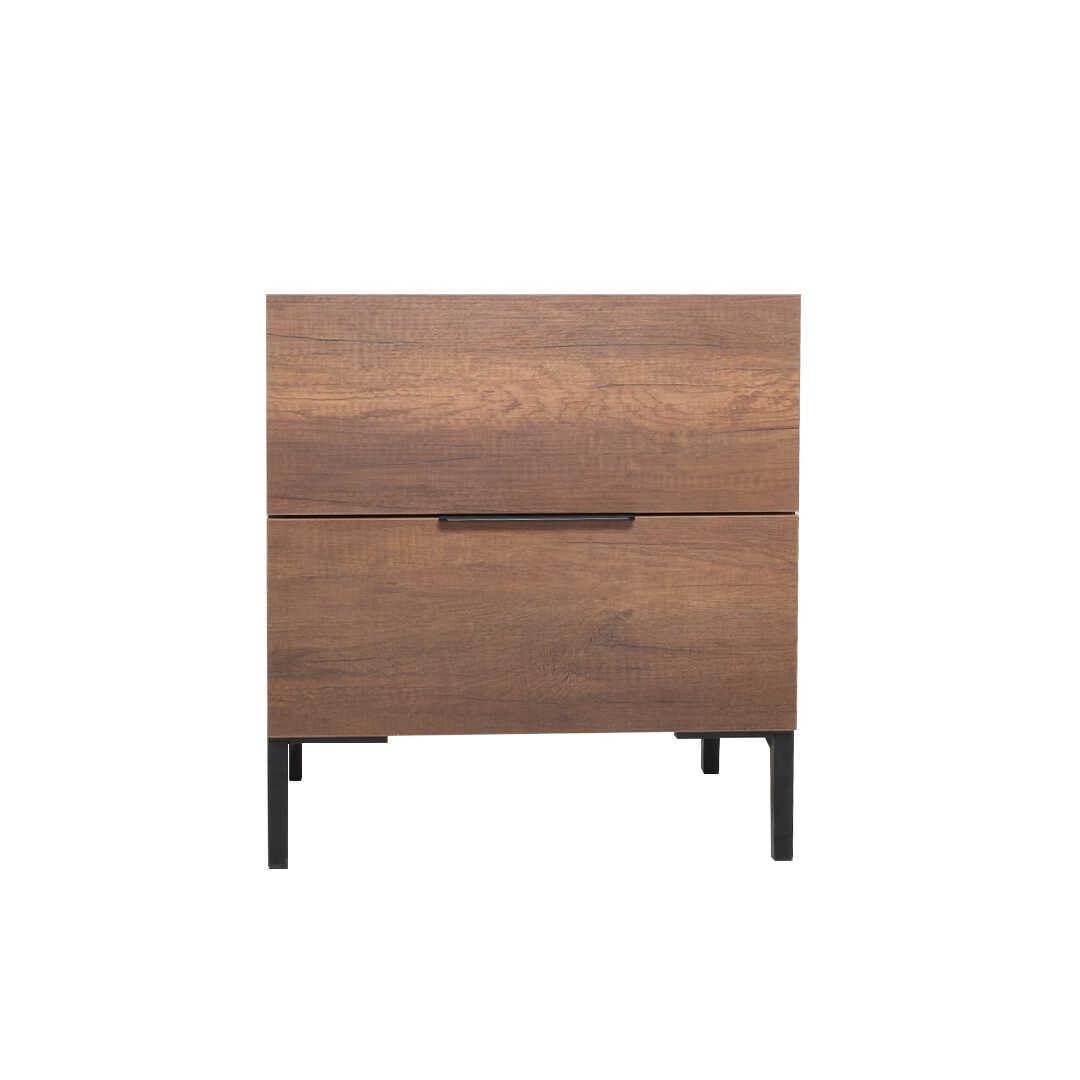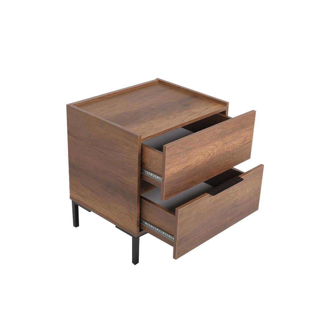 The two spacious drawers provide ample storage for all your nighttime essentials, keeping your space clutter-free and organized. The nightstand's compact size makes it perfect for small spaces, while the melamine coated particle board ensures durability and longevity.