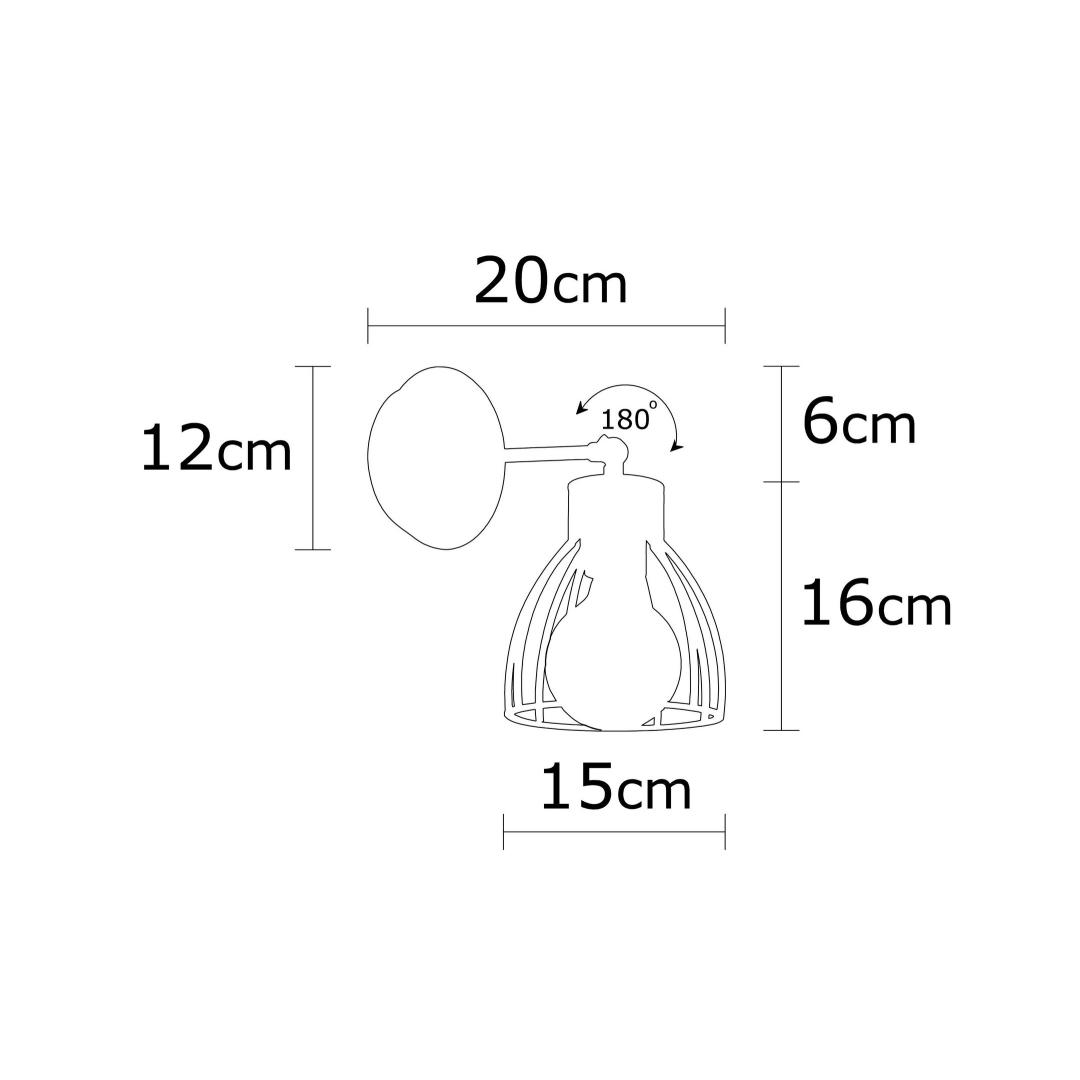 Not only does our Metal Body Wall Lamp boast a stunning design, but it also offers practicality and convenience. With a diameter of 15 cm and a height of 24 cm, this wall lamp is compact yet powerful, providing ample lighting to brighten up your space. The cap's diameter of 15 cm and height of 16 cm ensures a balanced and proportionate look, while the base plate with a diameter of 12 cm and height of 3 cm adds stability and support.