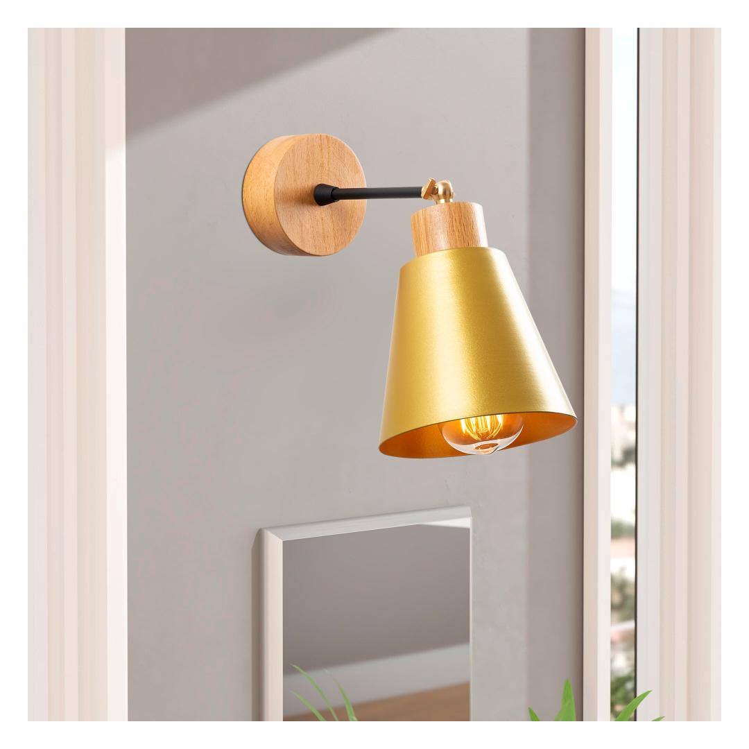 Introducing our exquisite Wall Lamp, a perfect blend of modern design and novelty. This stunning piece will not only light up your room but also add a touch of sophistication to your decor. Crafted with a metal body and a wooden base, this lamp is a true work of art that will captivate anyone who lays eyes on it.