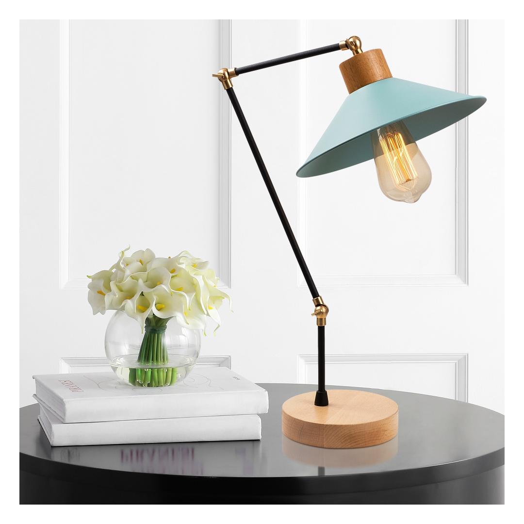 Our Turquoise Table Lamp is meticulously crafted with a metal body, ensuring durability and longevity. The wooden base adds a touch of natural beauty, while the carefully designed dimensions make it the perfect size for any tabletop or bedside.