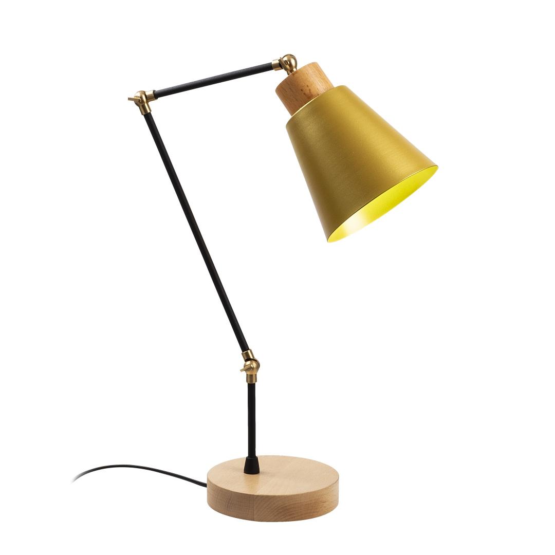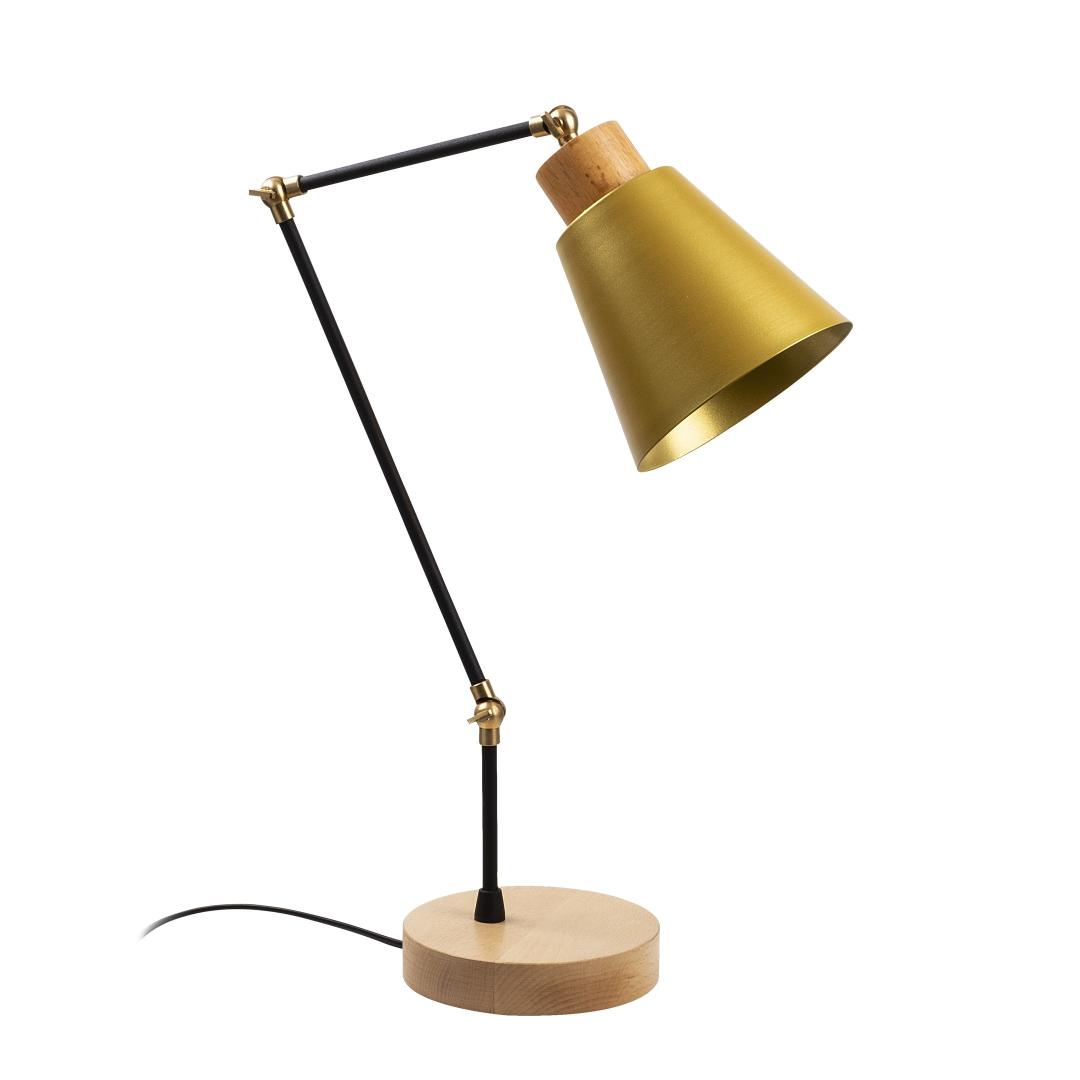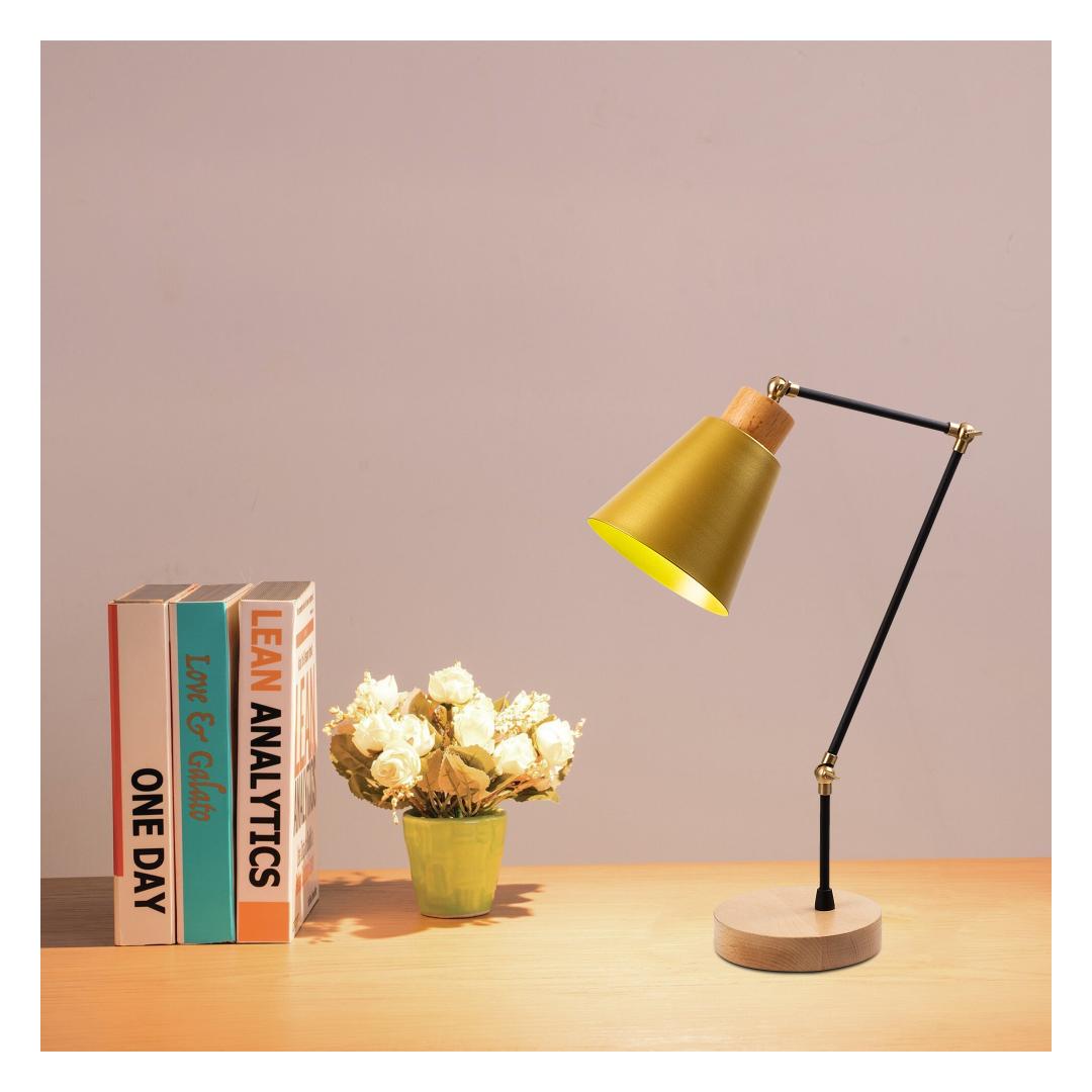 The lamp features a sleek metal body that exudes elegance and durability. Its wooden base adds a natural and warm touch, making it a perfect fit for any interior decor. The gold color of this lamp adds a touch of luxury and opulence, making it a standout piece in any room.