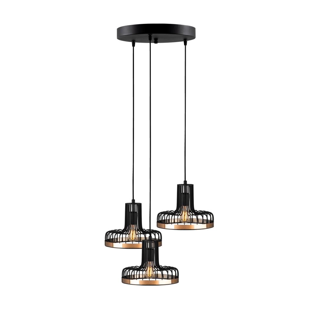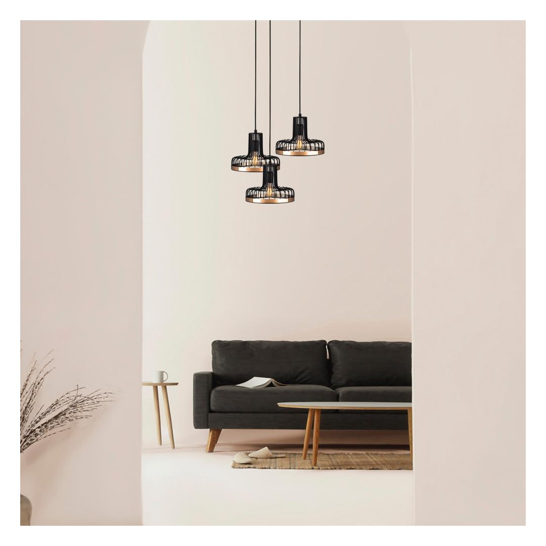Featuring a solid black metal body with copper accents, this chandelier effortlessly combines modernity with a touch of industrial charm. Its unique design is sure to catch the eye of anyone who enters the room, making it a perfect centerpiece for your living room, dining area, or bedroom.