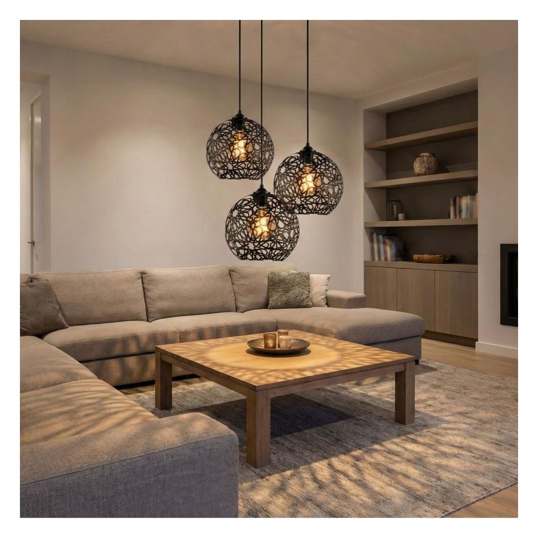 Elevate the ambiance of your living space with our mesmerizing Black Chandelier. Crafted with a metal body, this exquisite piece exudes elegance and sophistication, making it the perfect addition to any modern or contemporary setting.