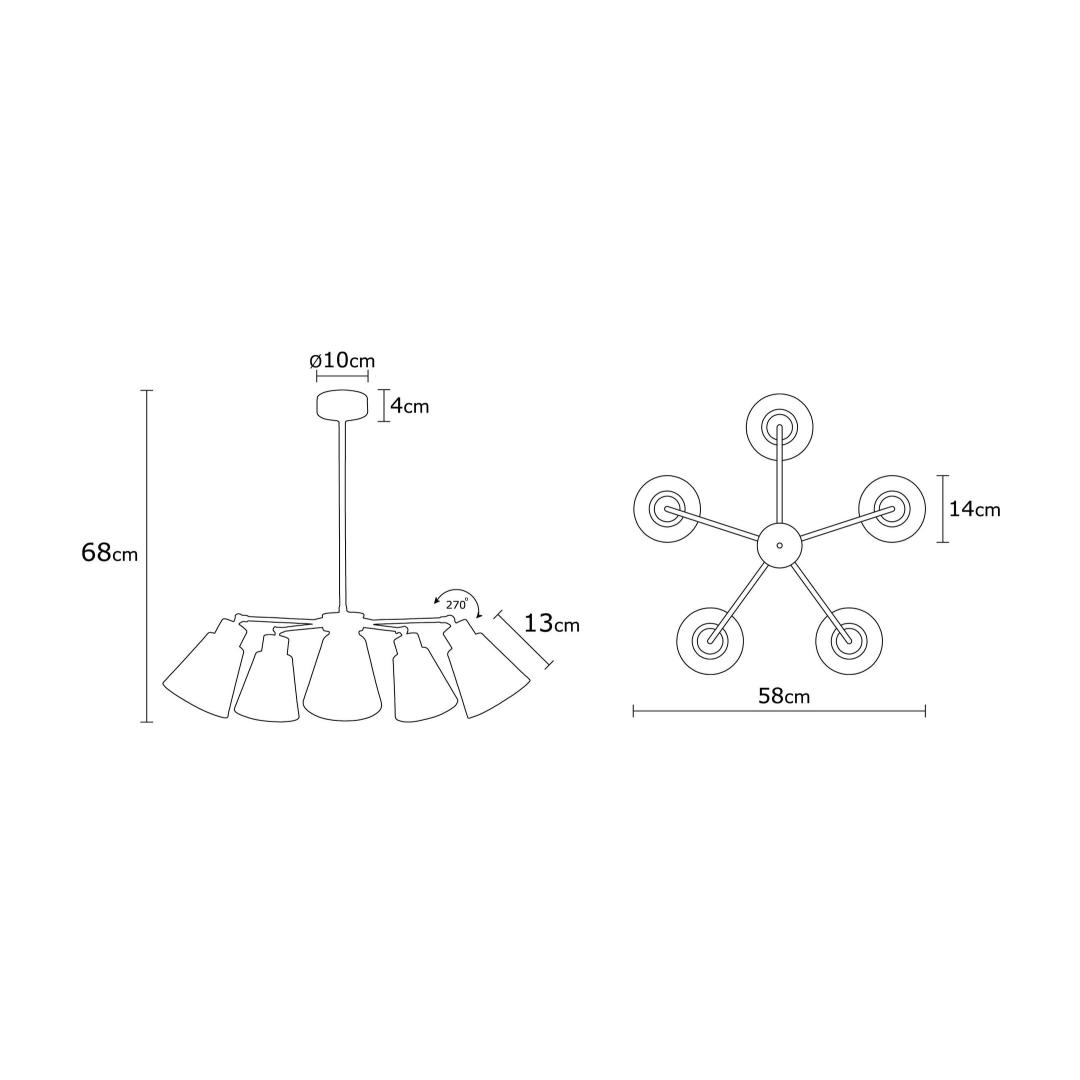 With its generous diameter of 58 cm and a height of 68 cm, this chandelier commands attention and fills your room with a warm, inviting glow. The wooden base adds a touch of natural beauty, while the metal body ensures durability and longevity.