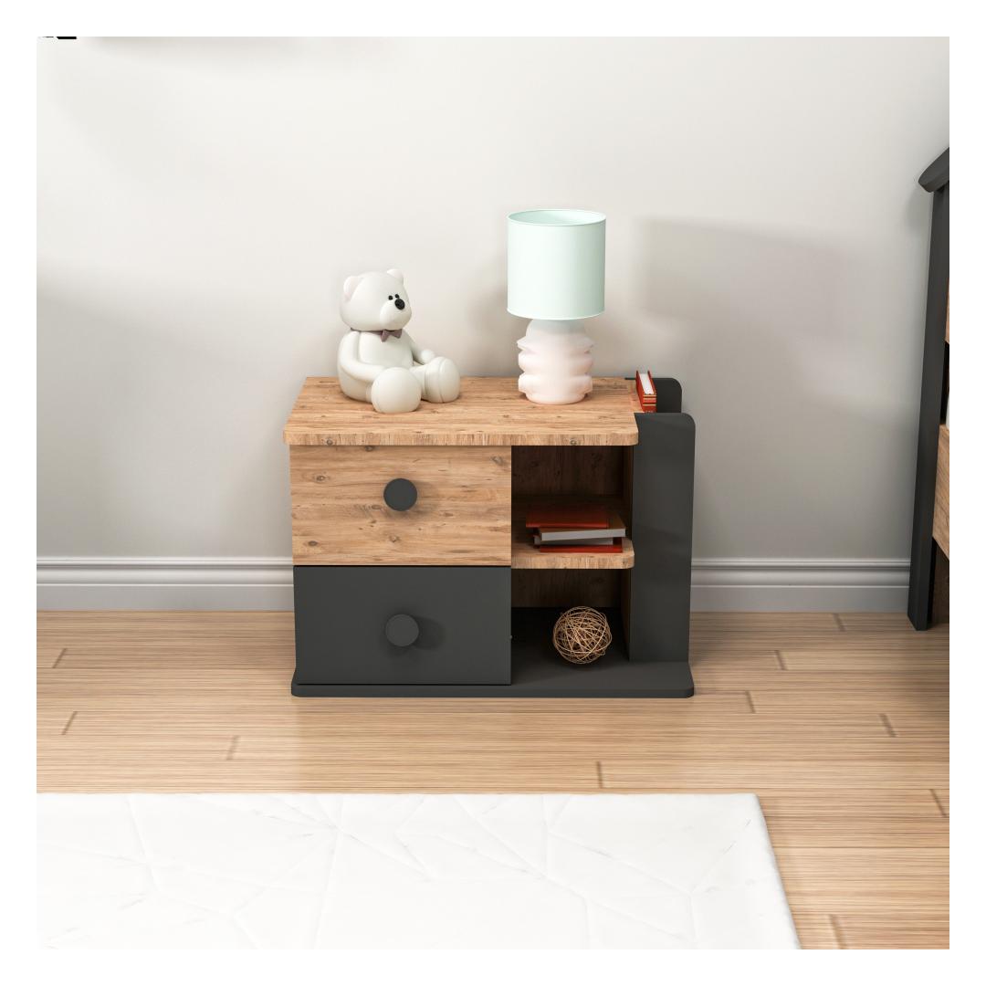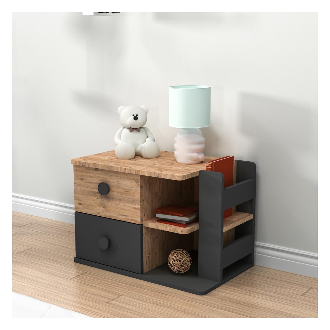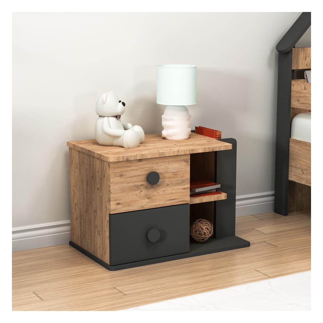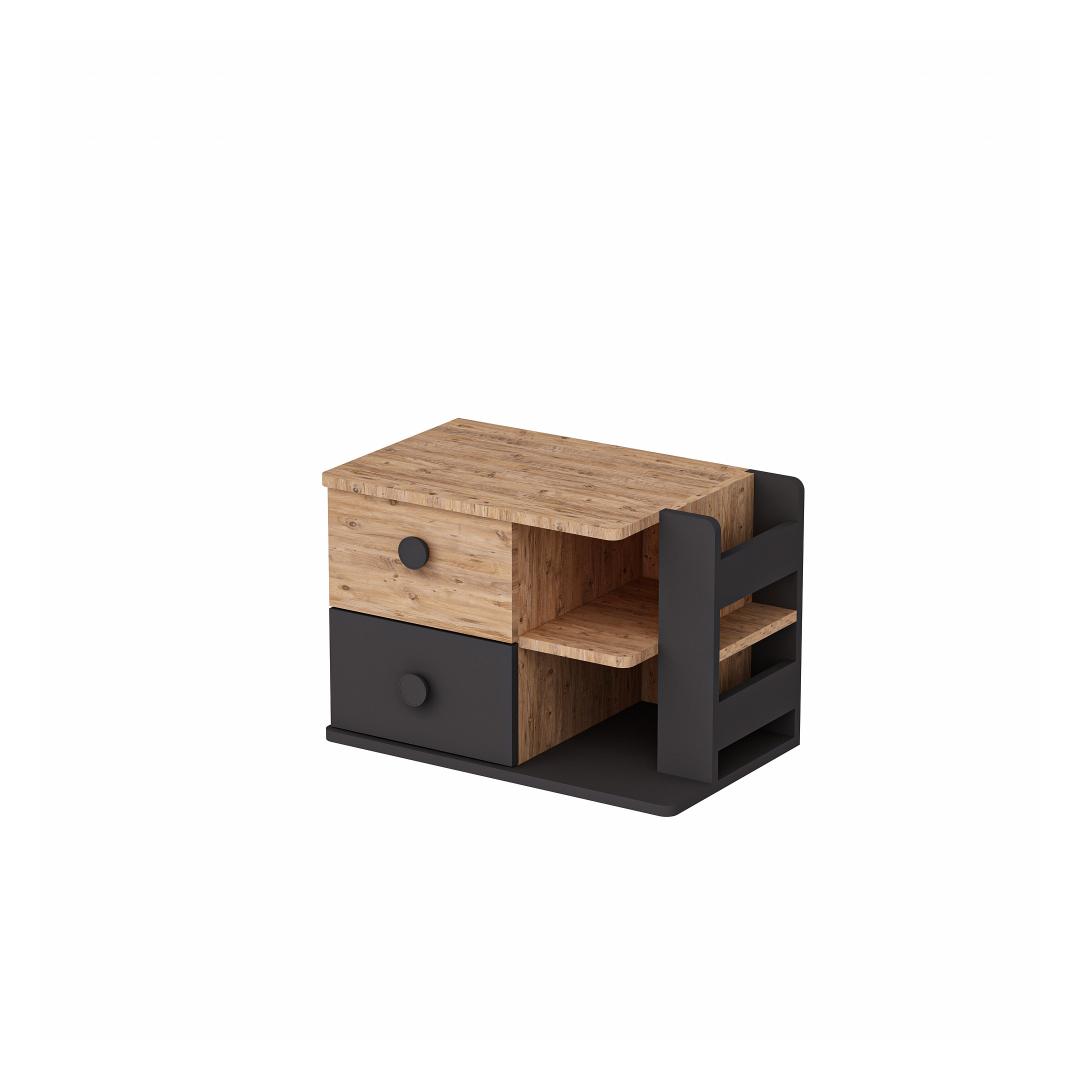 Featuring a beautiful combination of Atlantic Pine and Anthracite colors, this nightstand adds a touch of sophistication to your bedroom. The contrasting colors create a visually appealing look that effortlessly complements your existing furniture. With its spacious dimensions of 65 cm width, 44.6 cm height, and 40.3 cm depth, this nightstand offers ample storage space for your essentials, keeping your bedside neat and organized.