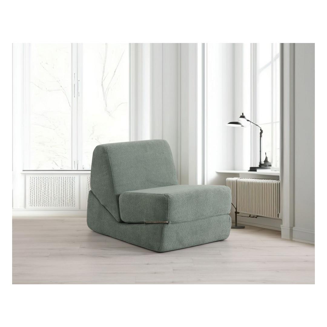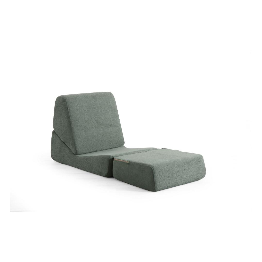 With its sleek frameless design and vibrant green color, this sofa-bed adds a pop of color and style to any room. The absence of legs gives it a modern and minimalist look, perfect for contemporary interiors.