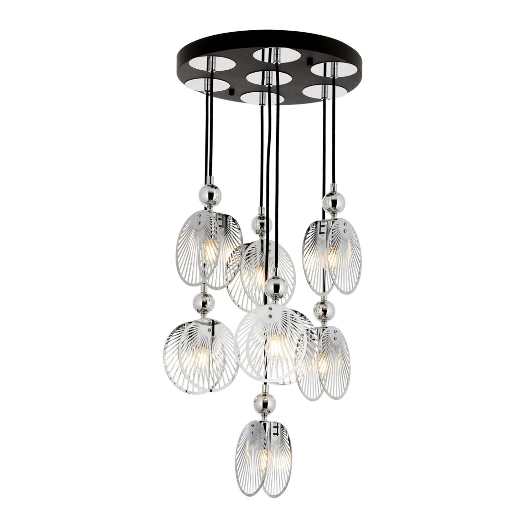 Add a touch of glamour to your home with this eye-catching chandelier. Its sleek chrome finish and unique design make it a statement piece that will impress your guests and elevate the ambiance of any room.