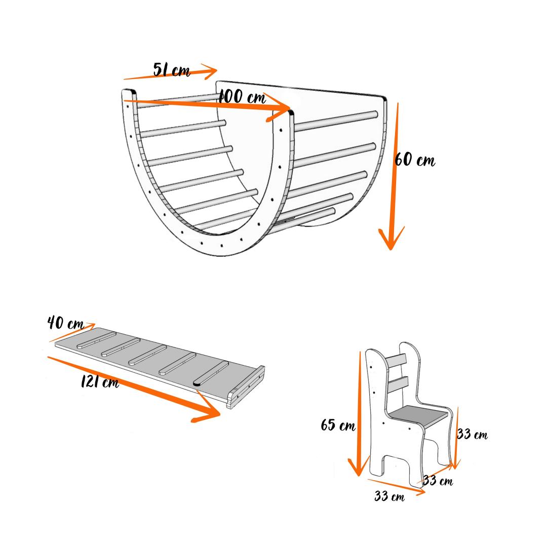 Introducing the Pikler Climber Set - the perfect addition to your child's playroom! This beautifully crafted set is made from 100% MDF, ensuring durability and safety for your little one.