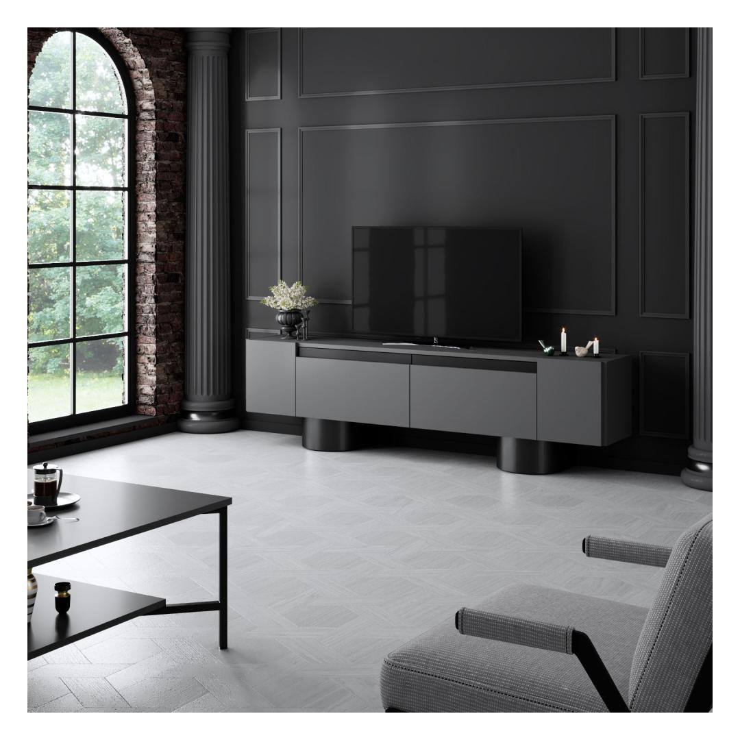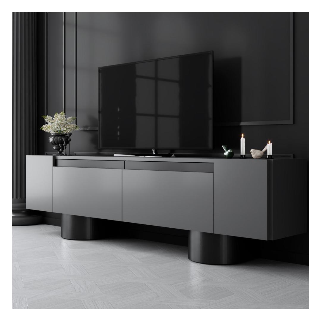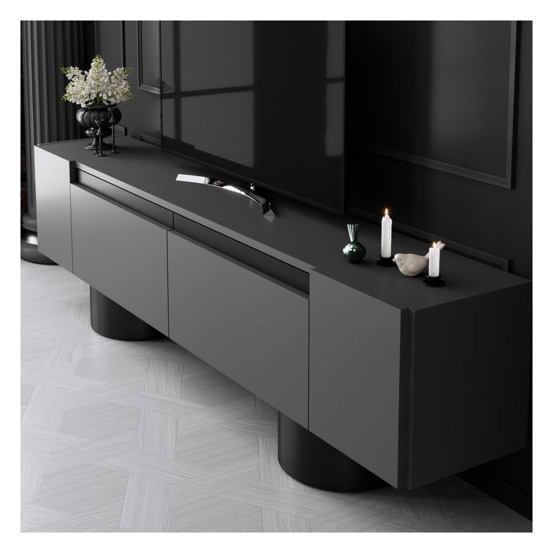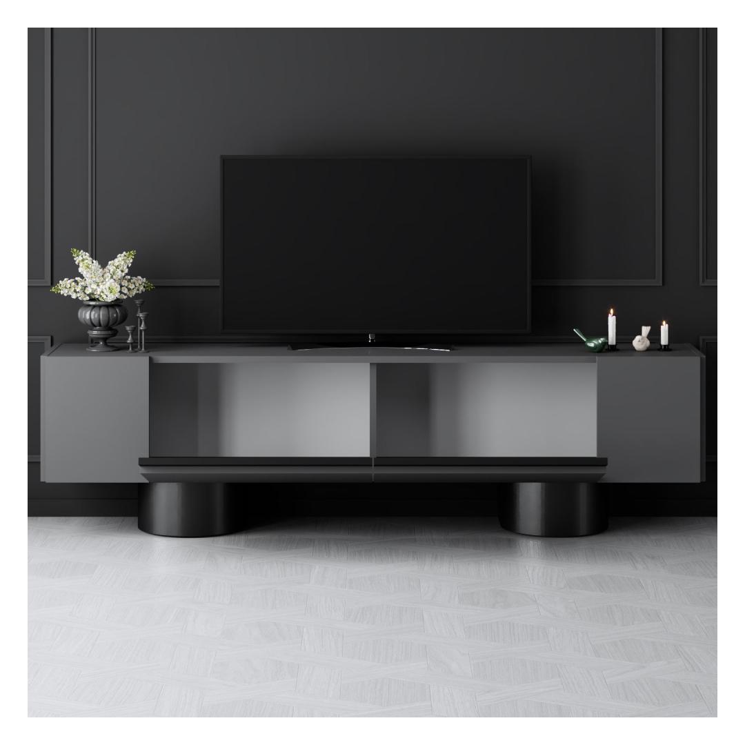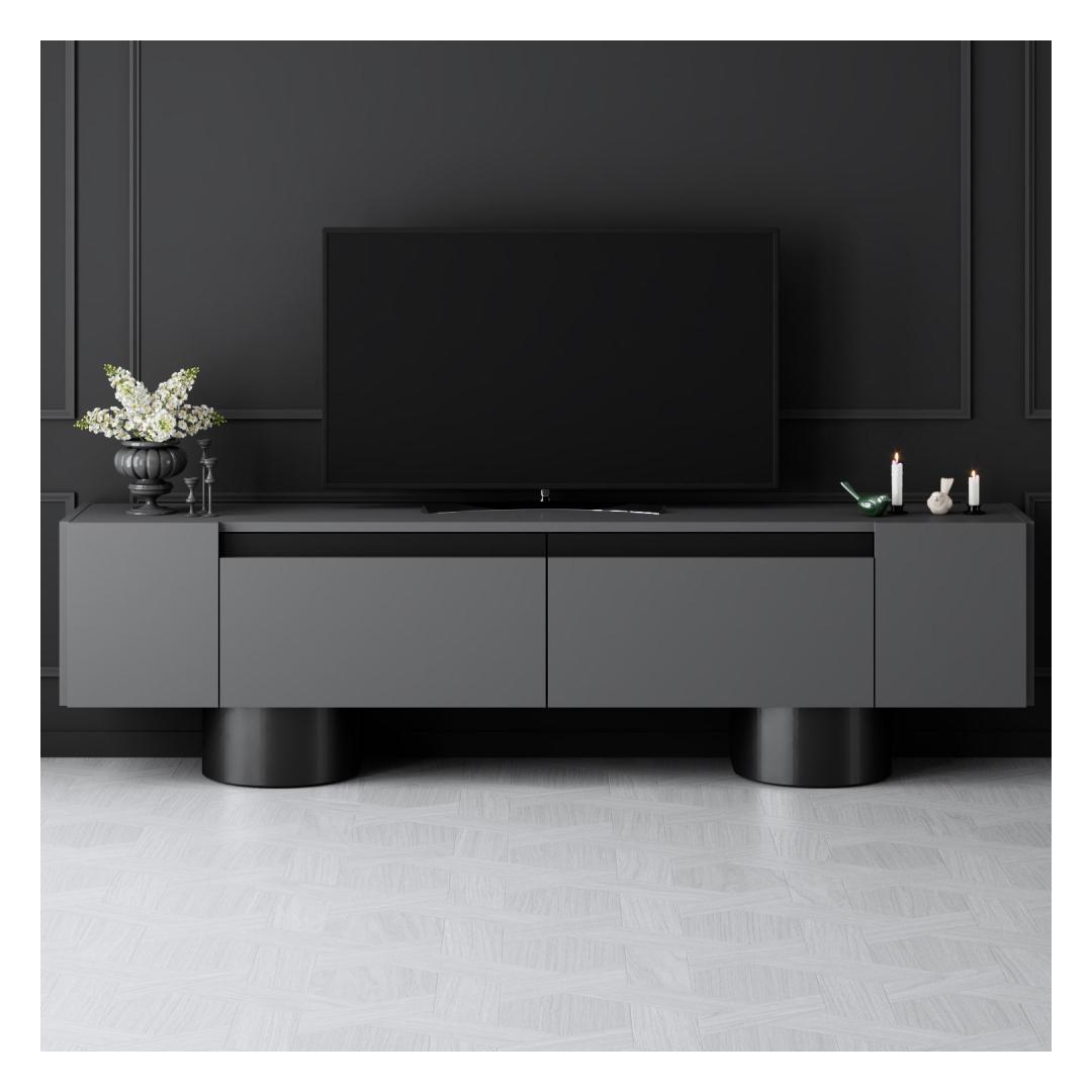 Transform your living room into a stylish and modern space with our sleek TV stand. This TV stand is not just a piece of furniture; it's a statement of your taste and personality. The combination of Anthracite and Black colors adds a touch of sophistication to any room, while the bendable sheet metal legs give it a unique and contemporary look.