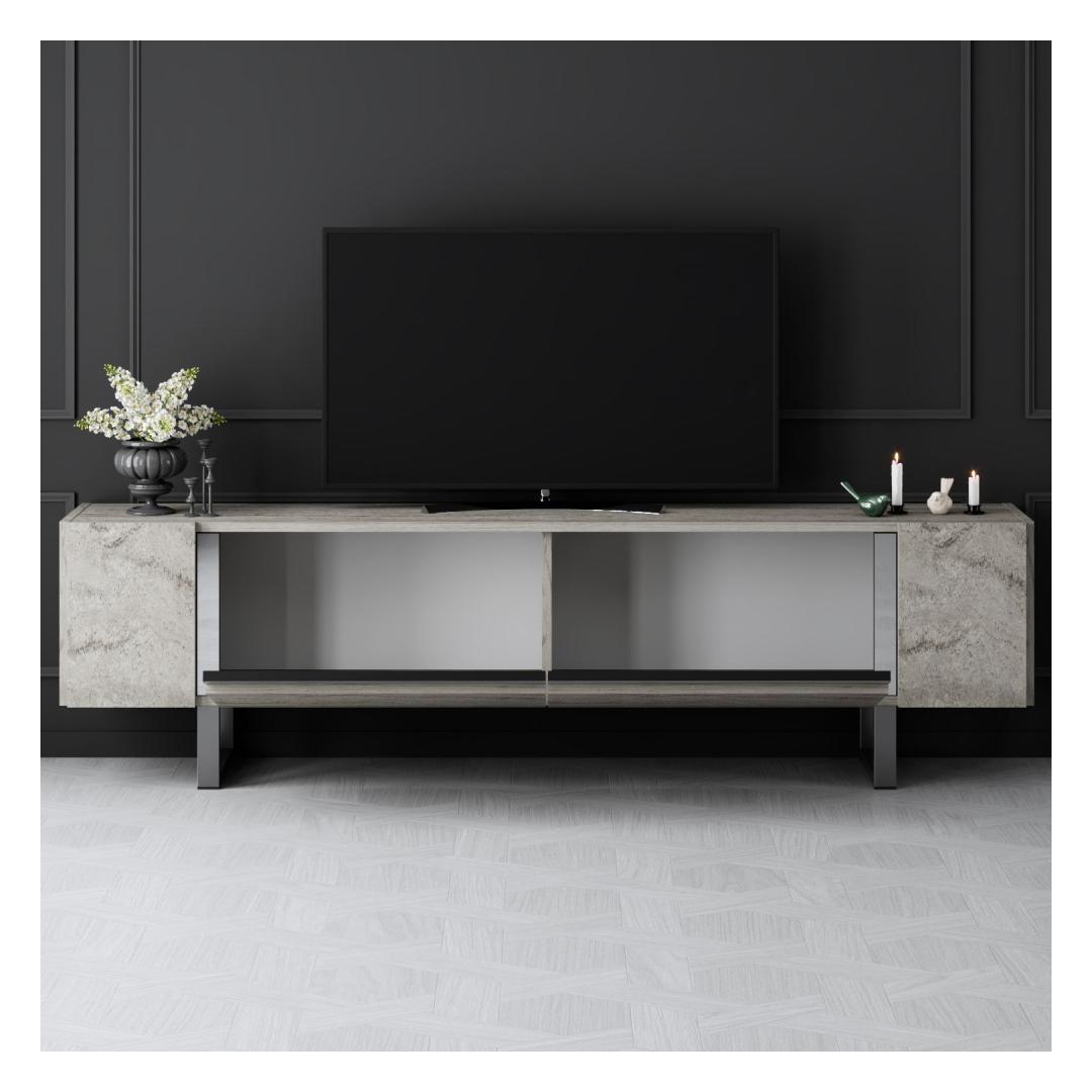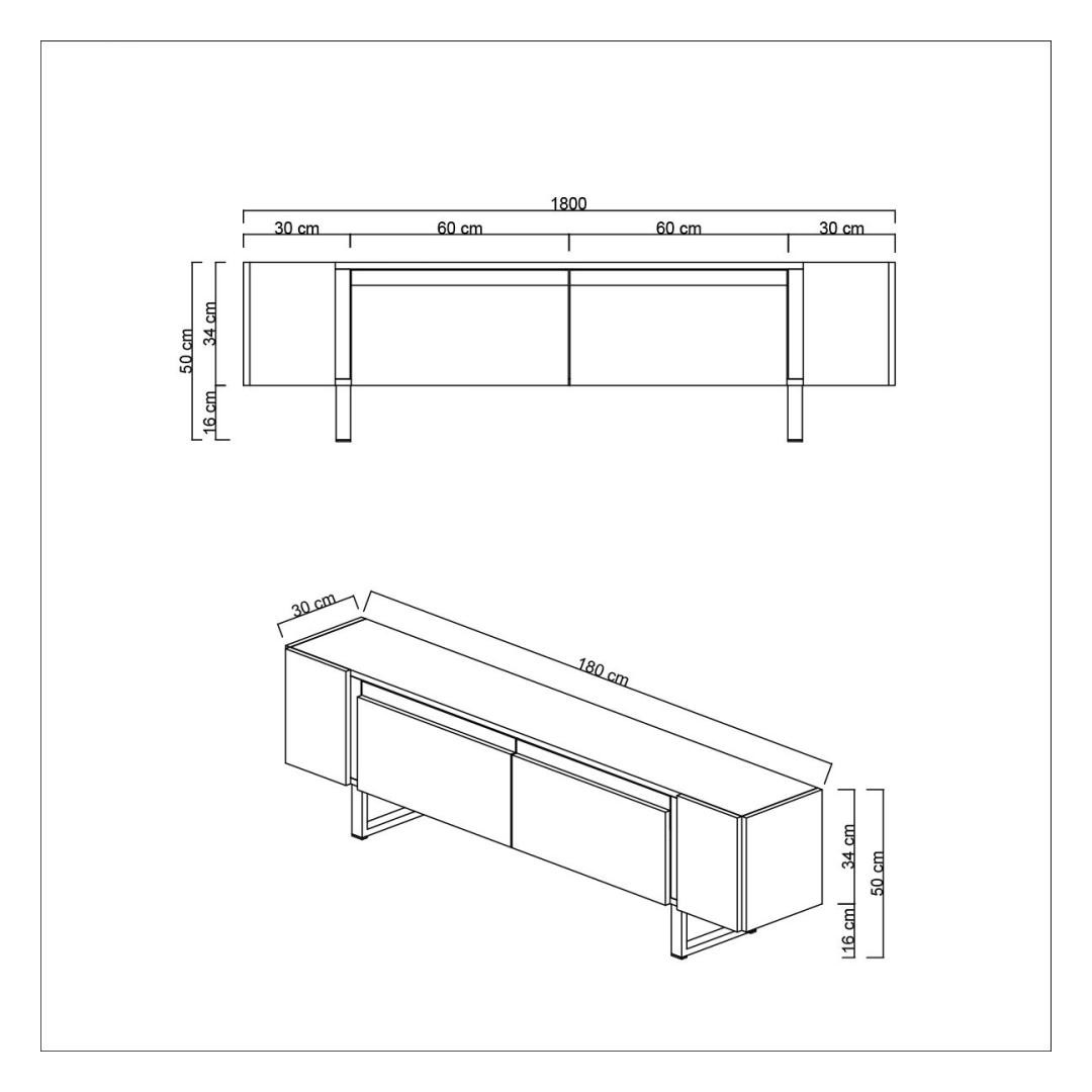 Say goodbye to clutter and disorganization with our TV stand. With its 180 cm width, 50 cm height, and 30 cm depth, this stand provides ample space for your TV, media devices, and decor items. The metal legs not only add a contemporary touch but also provide sturdy support for your entertainment essentials.