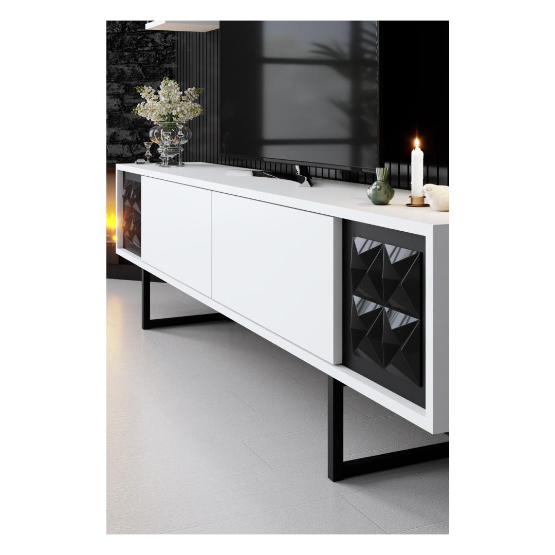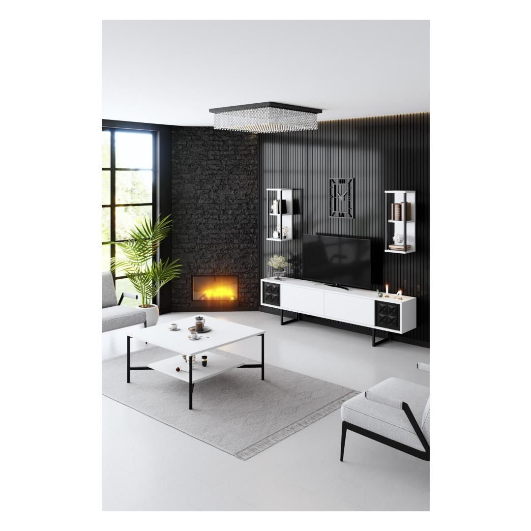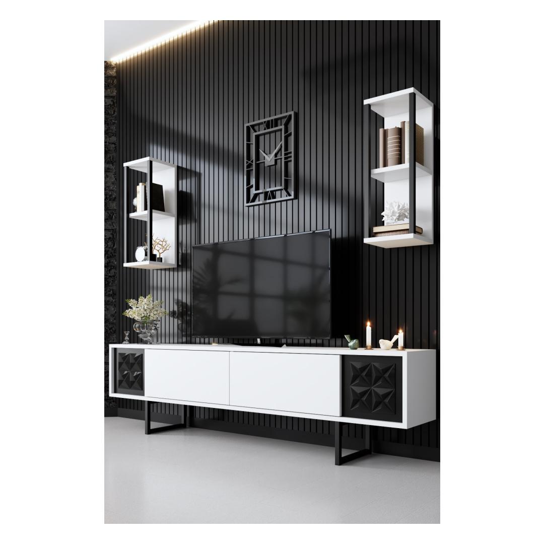 This TV unit features a stunning combination of white and black colors, adding a contemporary touch to any living room decor. The contrasting colors create a visually appealing focal point, making this unit a stylish addition to your home.