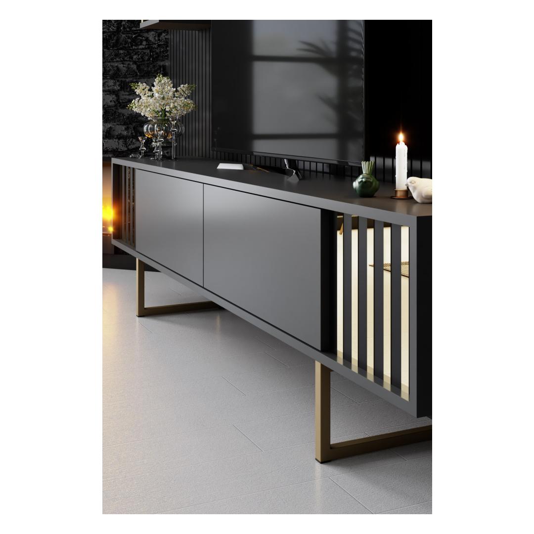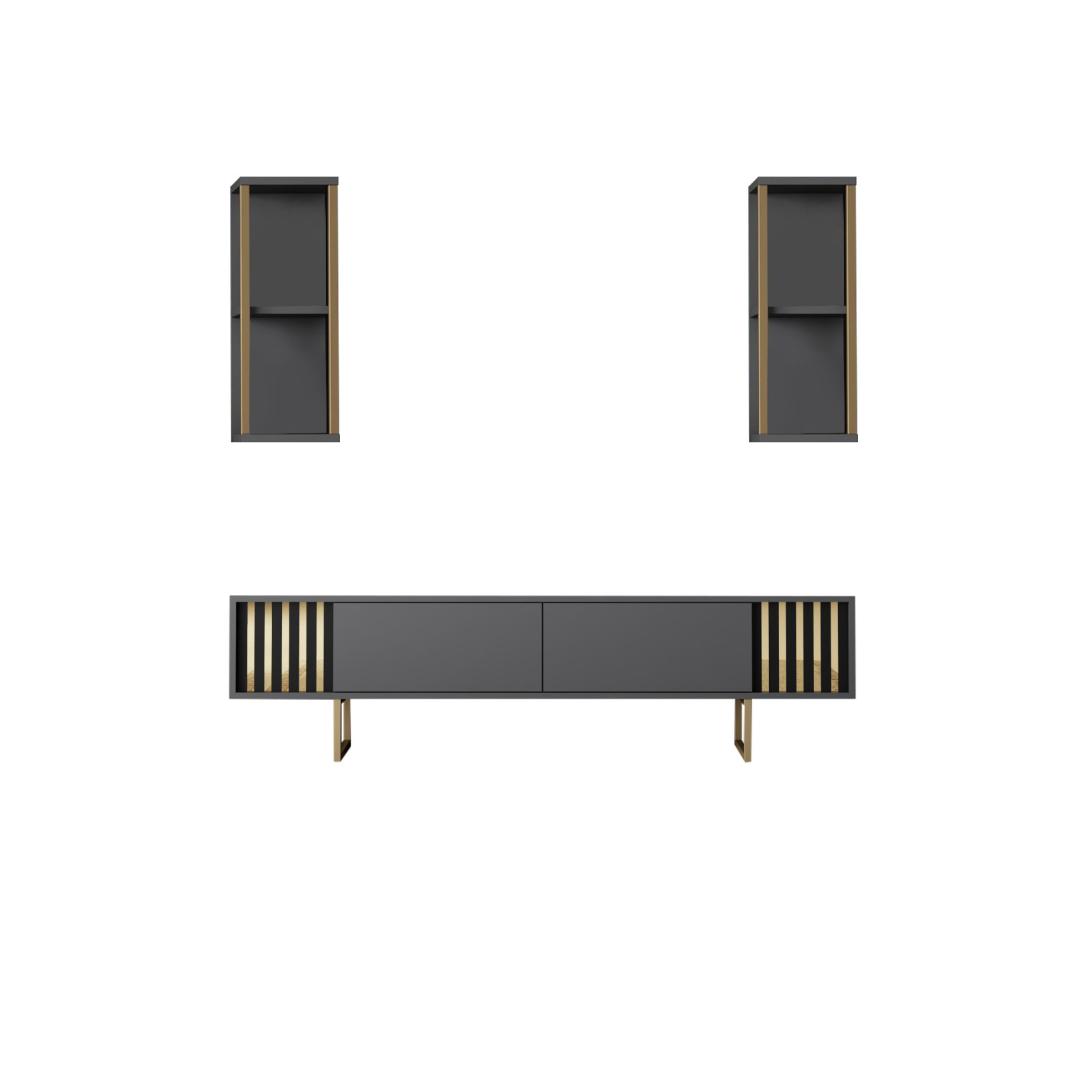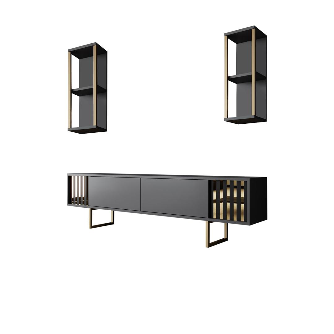The TV unit is designed with a stylish combination of anthracite and black colors, adding a touch of sophistication to your living room decor. This versatile color scheme effortlessly complements any interior style, making it a perfect addition to your home.