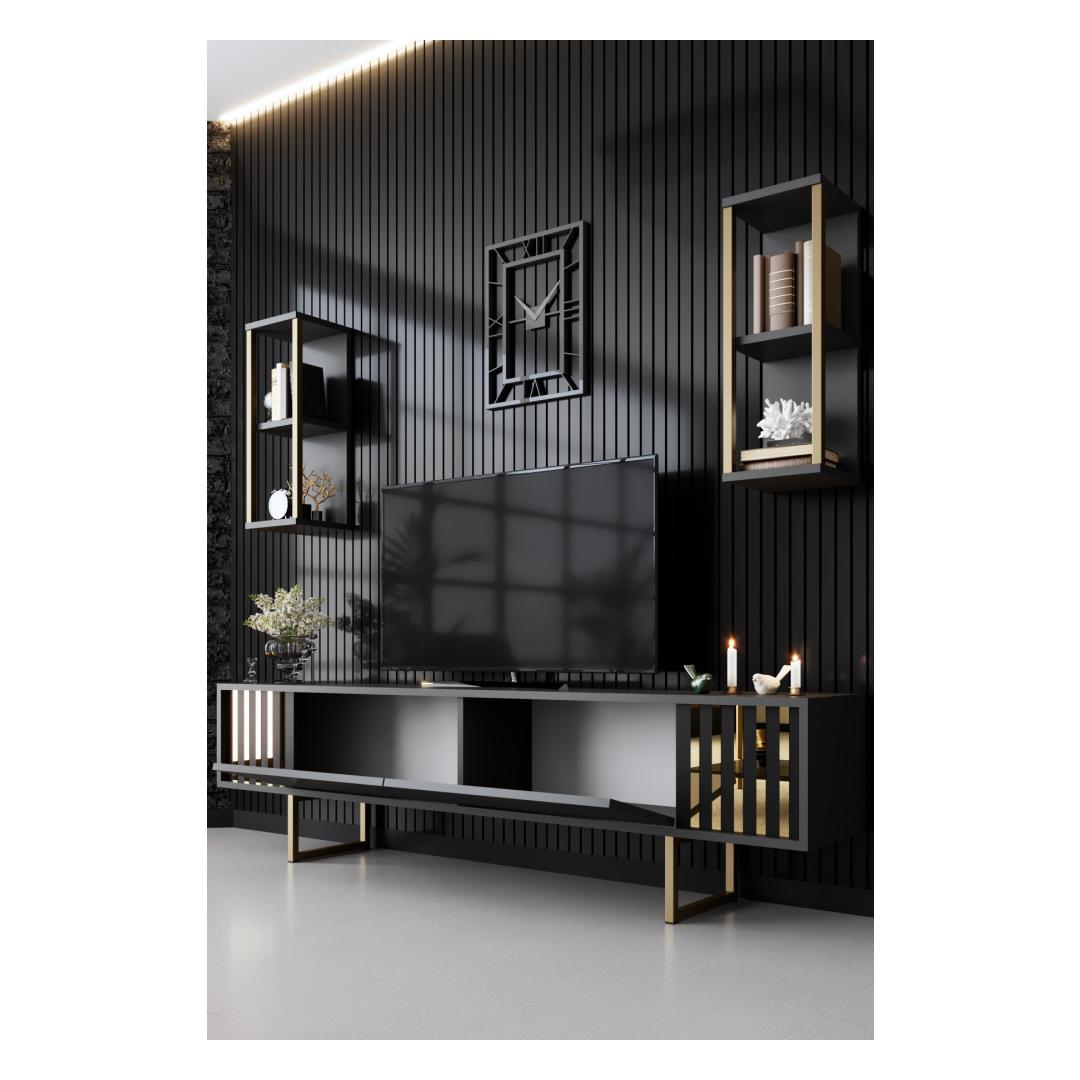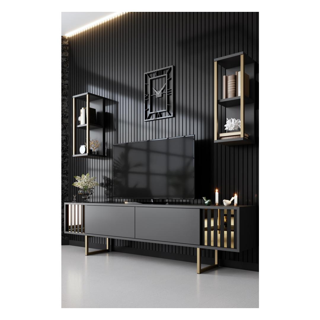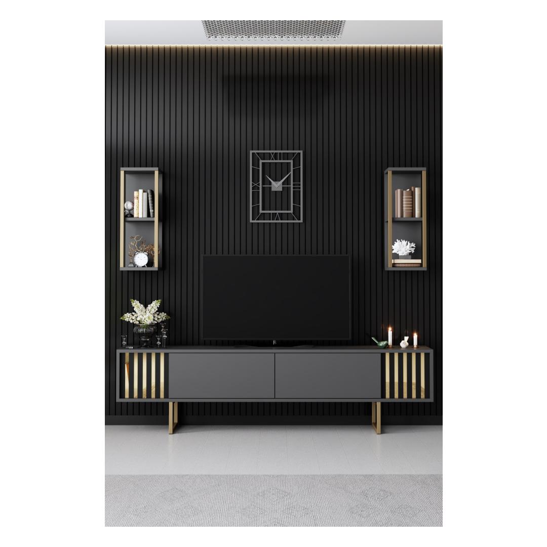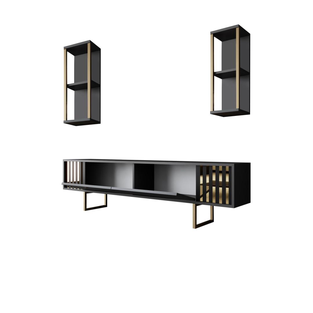The TV unit is designed with a stylish combination of anthracite and black colors, adding a touch of sophistication to your living room decor. This versatile color scheme effortlessly complements any interior style, making it a perfect addition to your home.