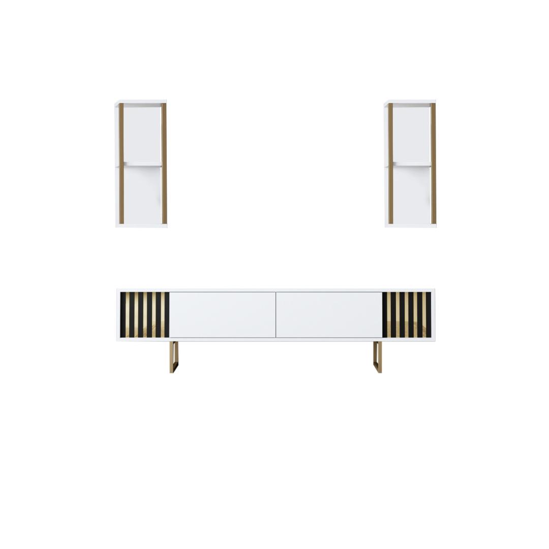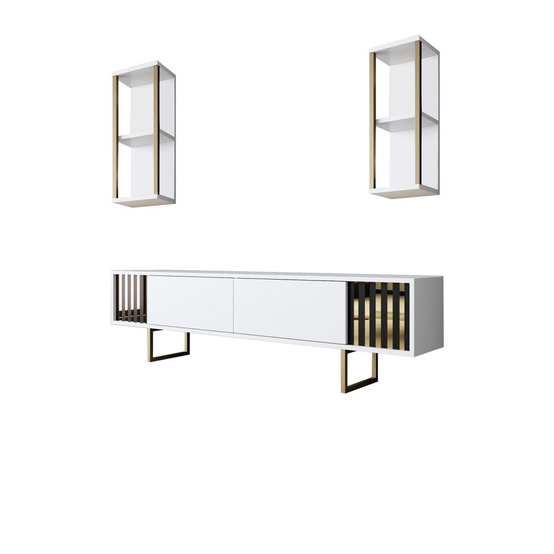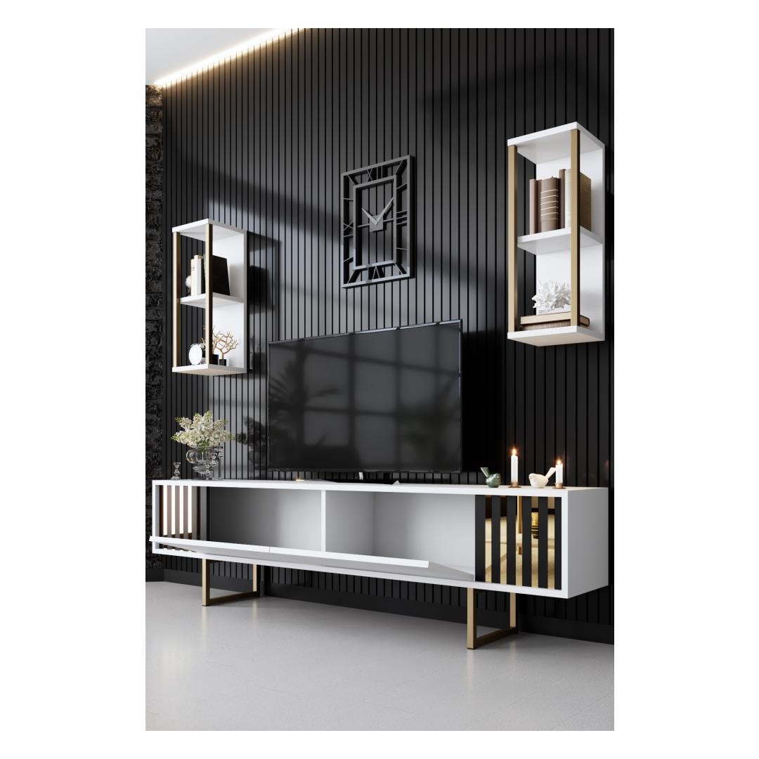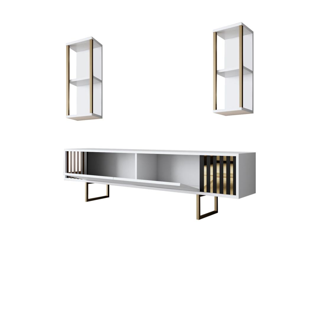 Designed with a combination of white and black colors, this TV unit adds a contemporary touch to any room decor. The contrasting colors create a visually appealing look, making it a focal point in your living room.