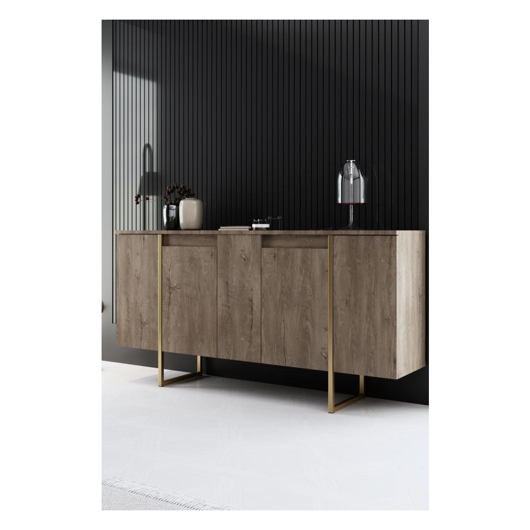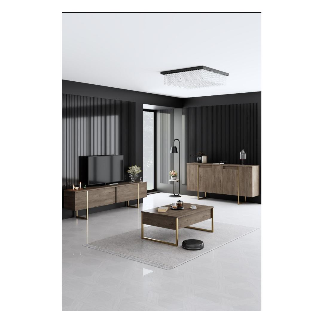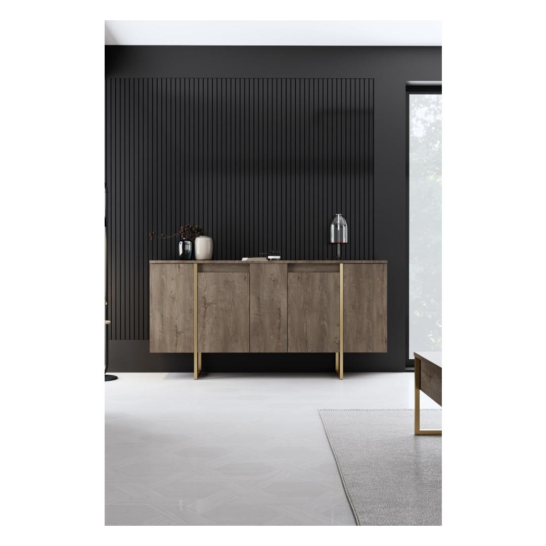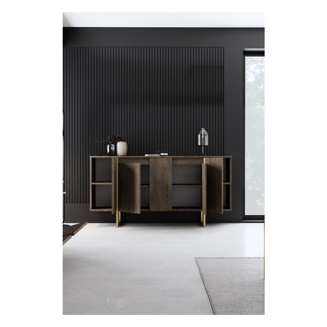 Sophisticated Design: The combination of walnut and gold colors creates a stunning visual appeal, making this console a statement piece in any space. Its sleek and modern design effortlessly complements any interior style, adding a touch of luxury to your home.