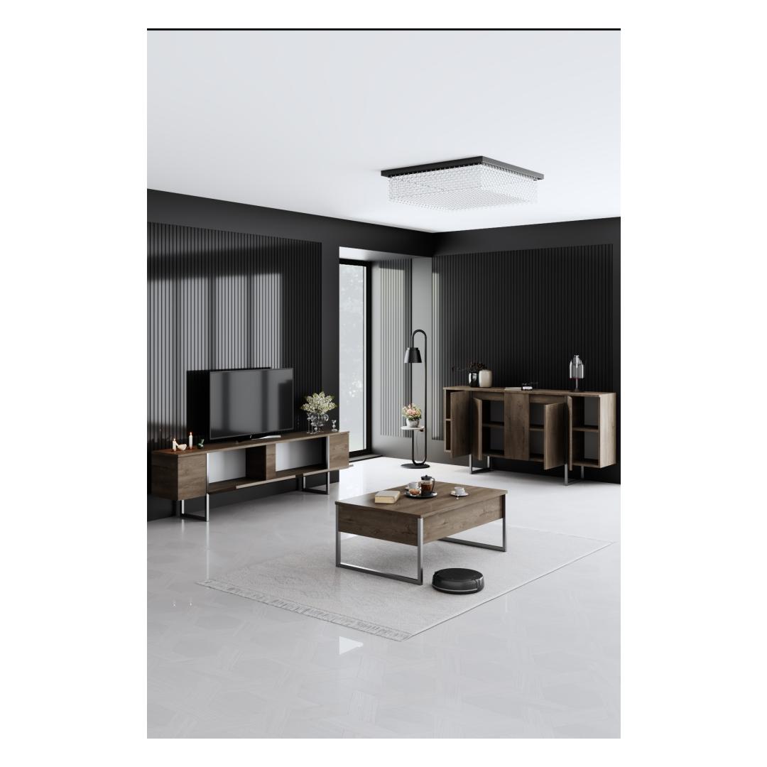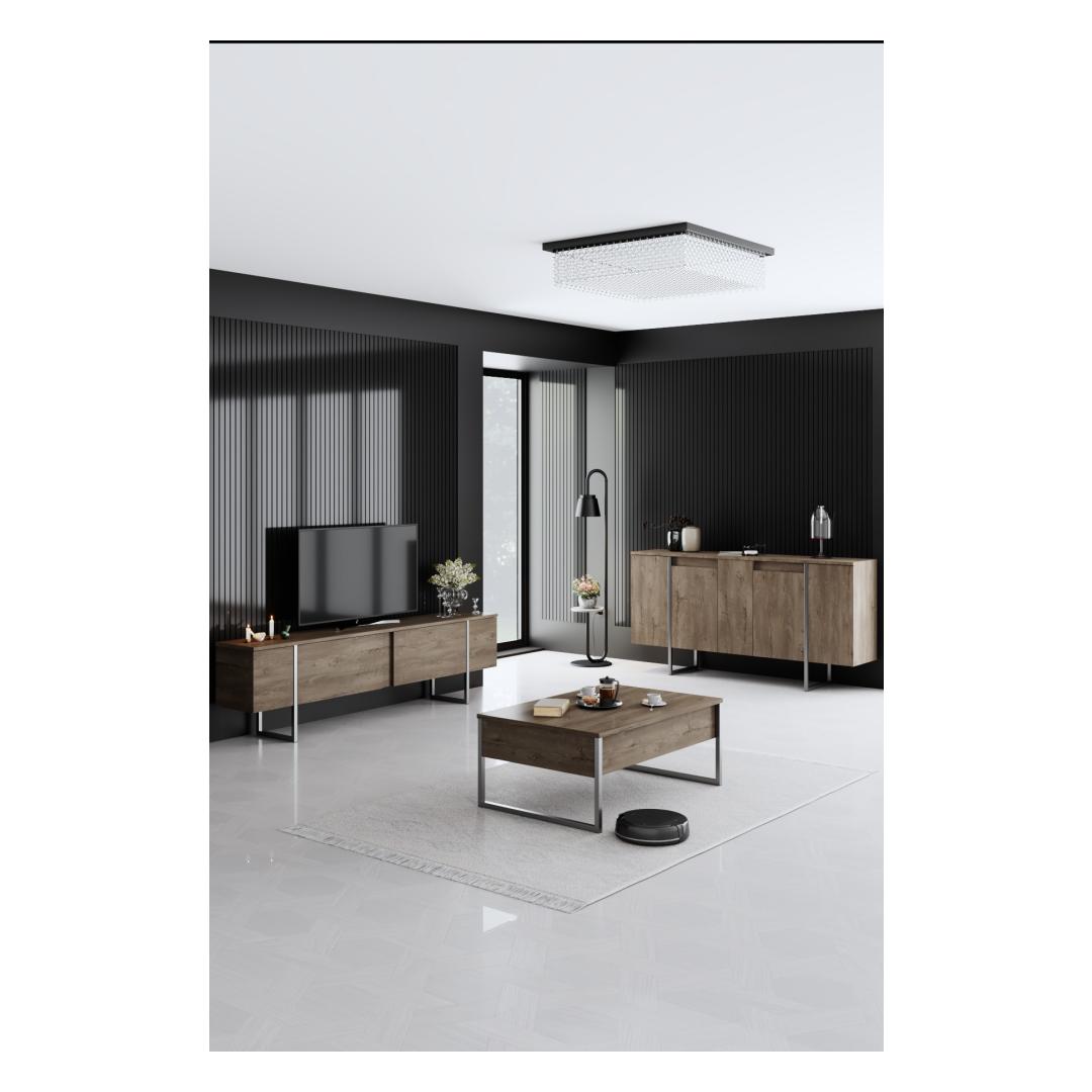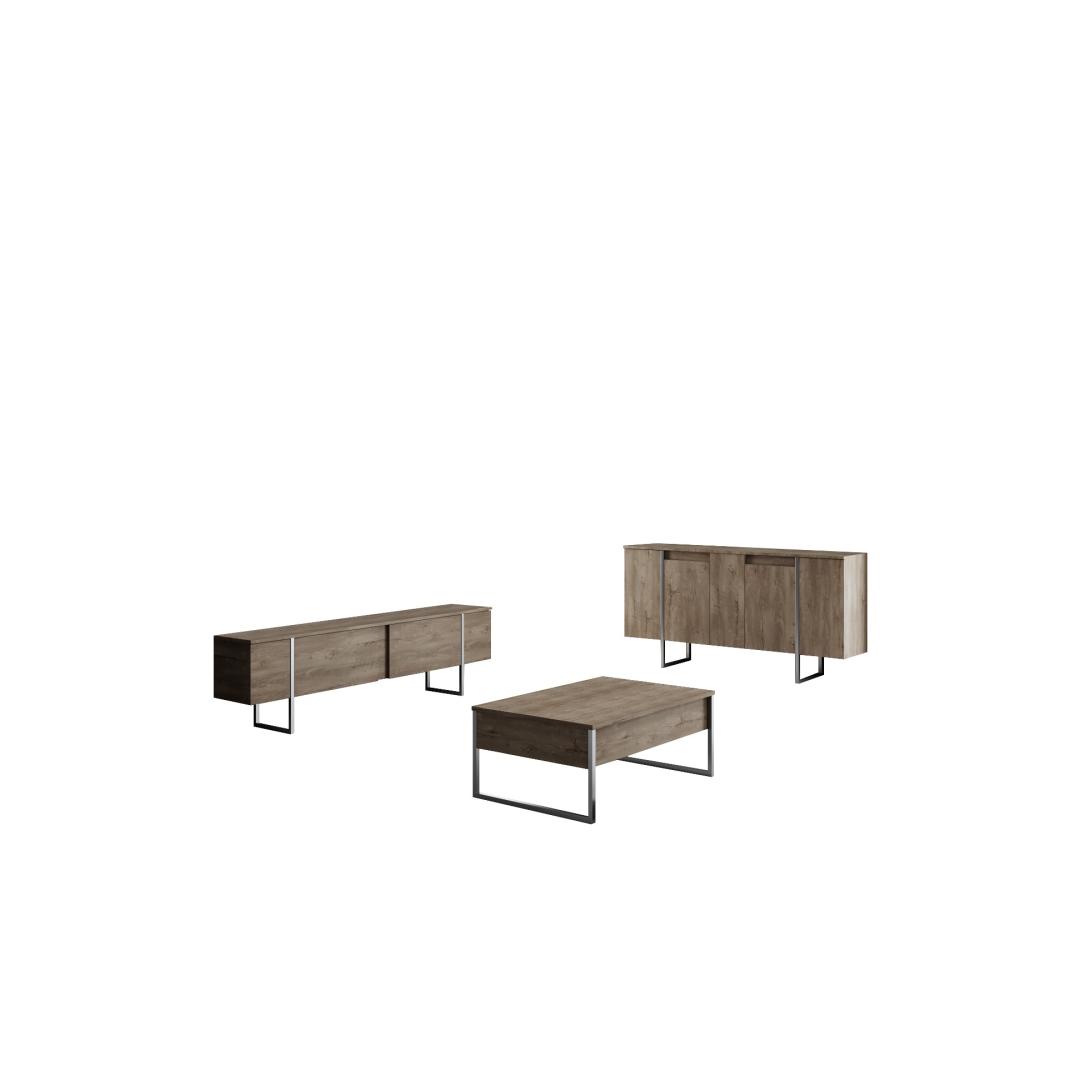 The walnut and silver color combination adds a touch of warmth and sophistication to your living room, making it the perfect backdrop for cozy nights in or entertaining guests. The 18 mm thickness of the particle board ensures that this set is not only stylish but also built to last for years to come.