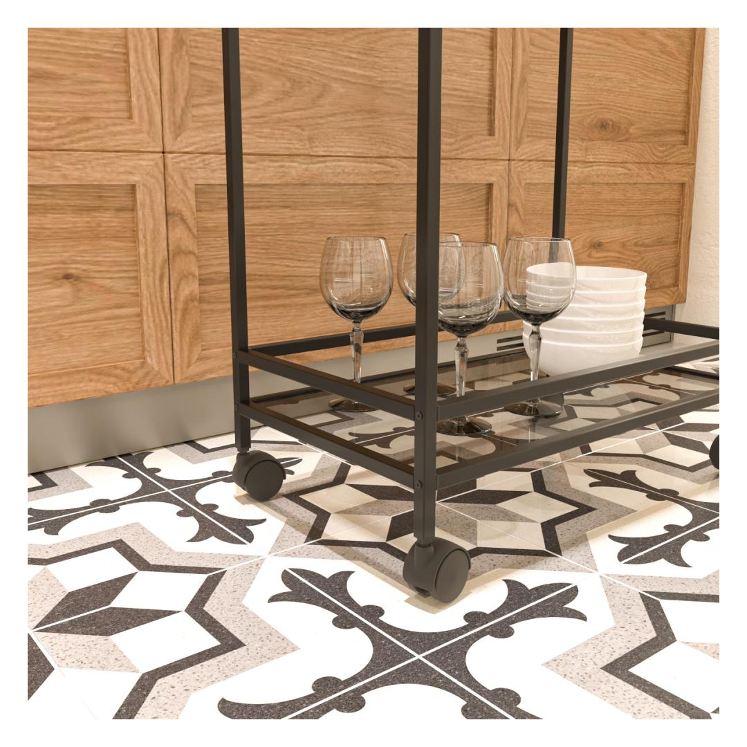 Not only is our Dinner Trolley stylish, but it's also highly functional. The 4 mm tempered glass is durable and easy to clean, while the metal legs provide stability and support. With a size of 60 cm width, 80 cm height, and 35 cm depth, this trolley is the perfect addition to any dining room.
