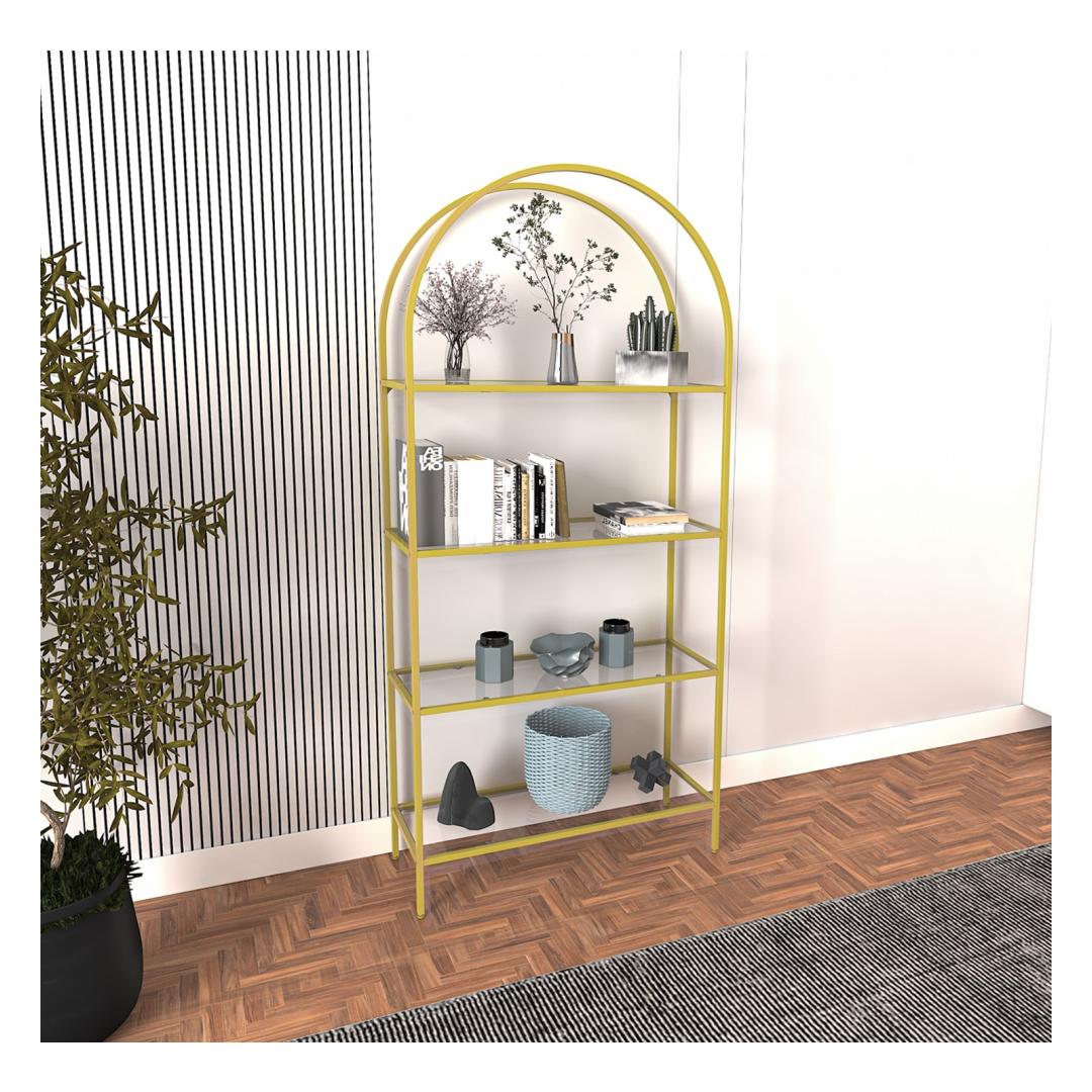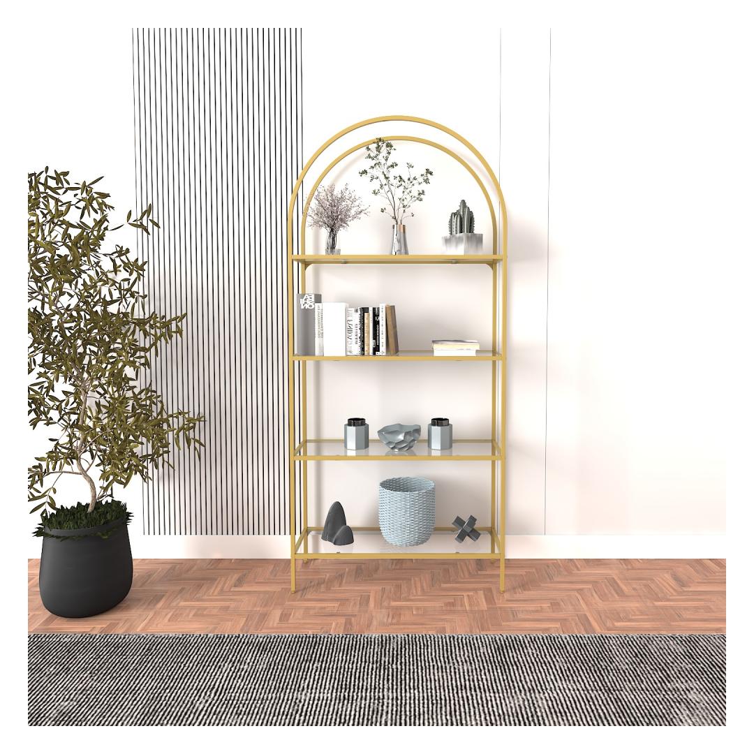 The clear tempered glass shelves give this bookshelf a sleek and modern look, while the gold metal legs add a touch of luxury. It's the perfect combination of style and functionality, making it a must-have for any modern home.