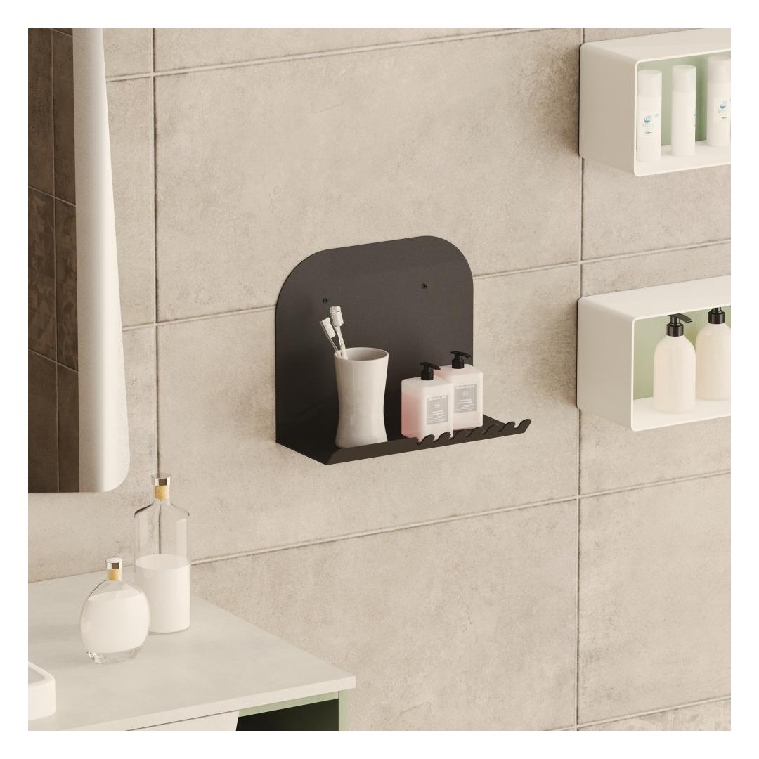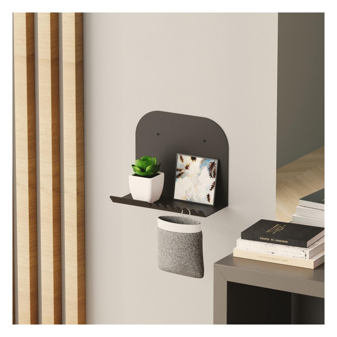 The sleek black color of this shelf adds a touch of sophistication to any room. Its minimalist design allows it to blend seamlessly with any decor style, from modern to industrial. Whether you hang it in your living room, bedroom, or office, this shelf will instantly elevate the look of your space.