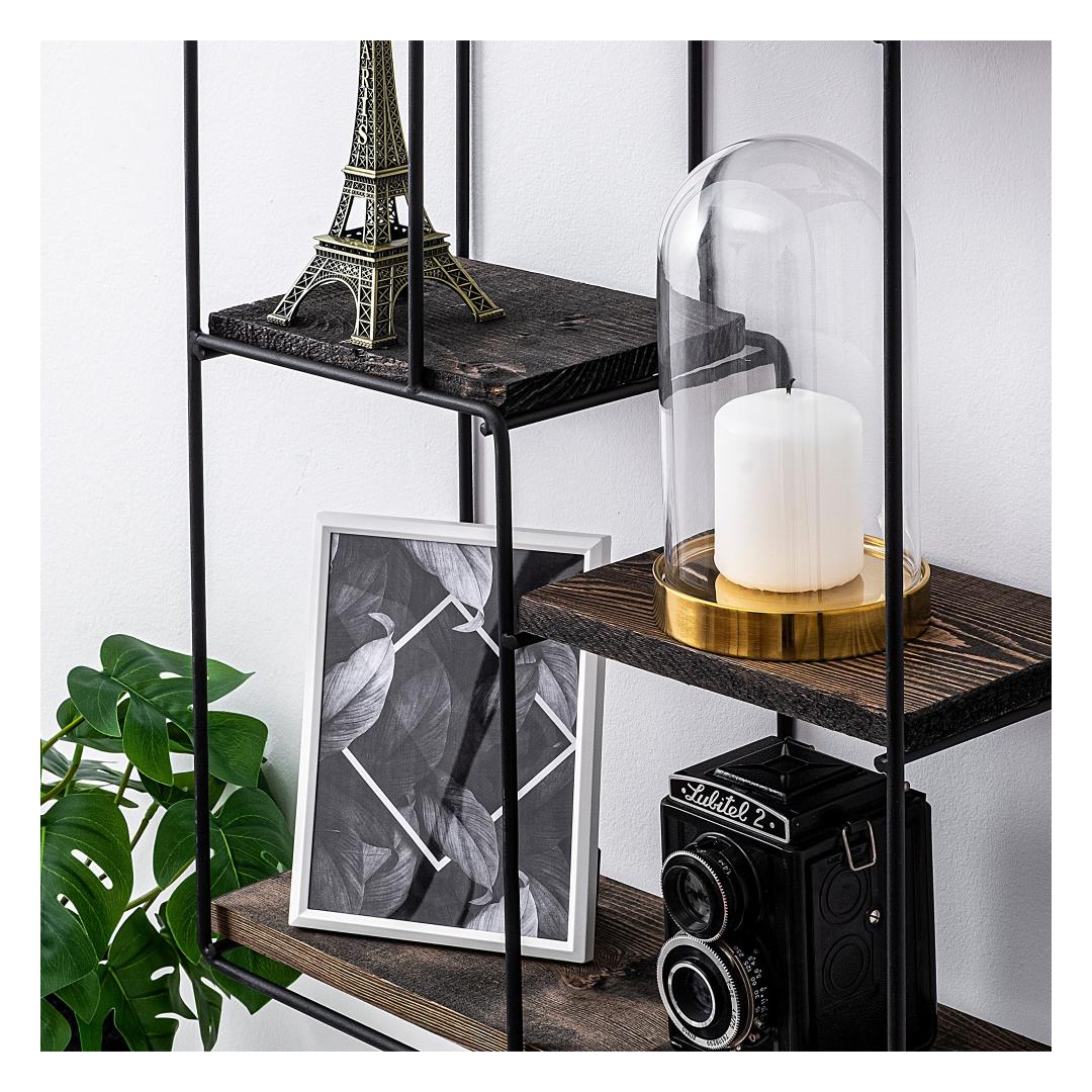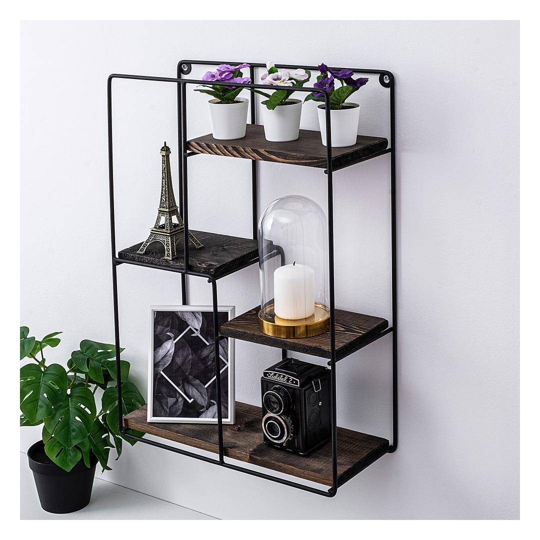 Our wall shelf is made from 100% spruce wood, ensuring its longevity and resistance to wear and tear. The metal frame adds extra stability, allowing the shelf to bear a total weight of 4 kg.