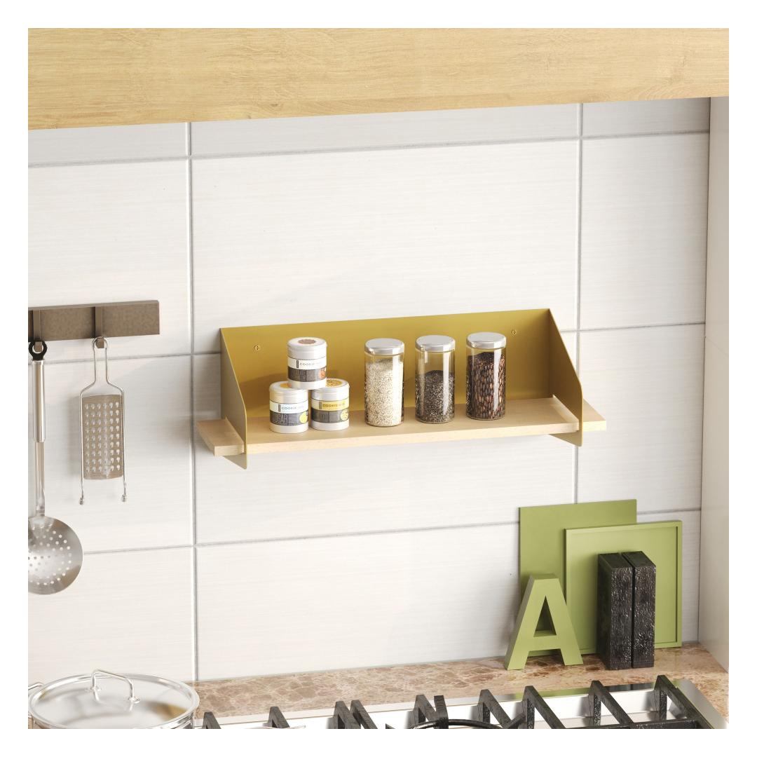 Transform your living space with our stunning Gold Wall Shelf. Crafted from 100% wooden shelves and a sturdy metal frame, this shelf exudes elegance and sophistication. The rich gold color adds a touch of luxury to any room, making it the perfect addition to your home decor.