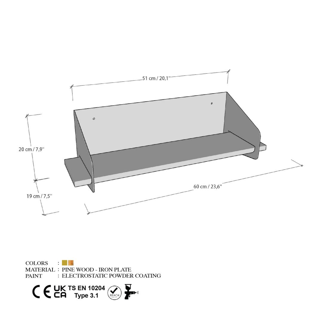 With a width of 60 cm, height of 20 cm, and depth of 19 cm, this wall shelf provides ample space for displaying your favorite decor items, books, or plants. The 18 mm thick wooden shelves are strong and durable, while the 1.5 mm thick metal frame ensures stability and support.