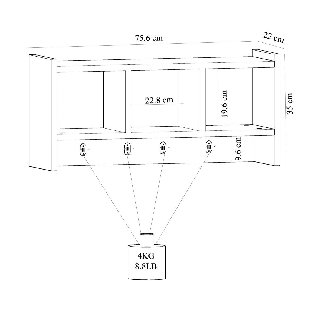 With a width of 75.6cm, height of 35cm, and depth of 22cm, this wall shelf offers ample space to store and organize your belongings. The multipurpose hanging rack allows you to display your favorite items, while the fixed wall installation ensures stability and safety.