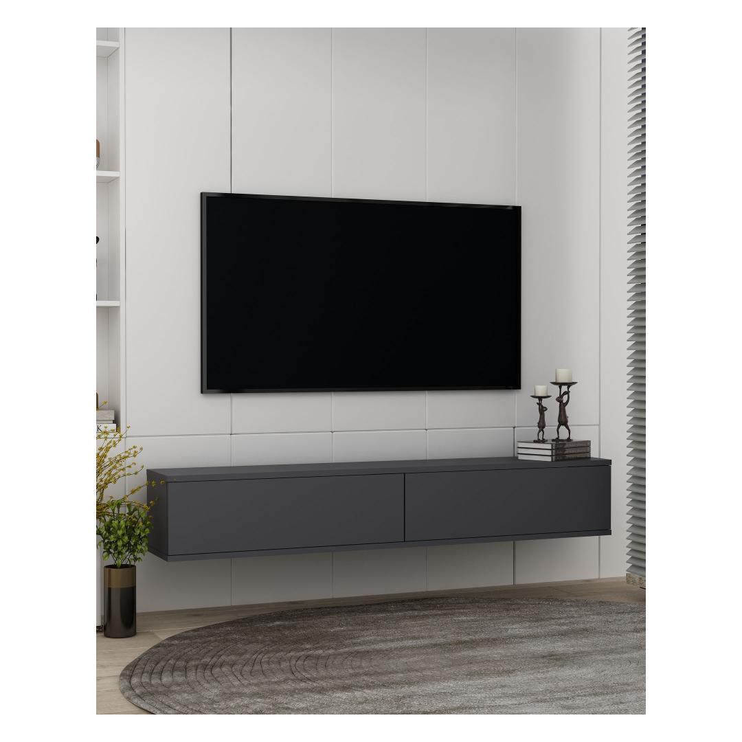 Transform your living room into a stylish and organized space with our sleek and modern TV stand. Made from 100% melamine coated particle board, this TV stand is not only durable but also incredibly stylish. The Anthracite color adds a touch of elegance to any room, making it the perfect addition to your home decor.