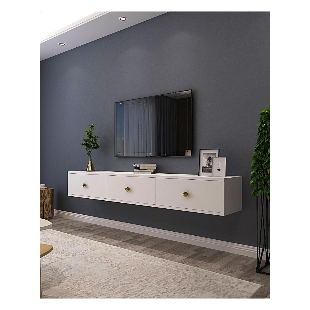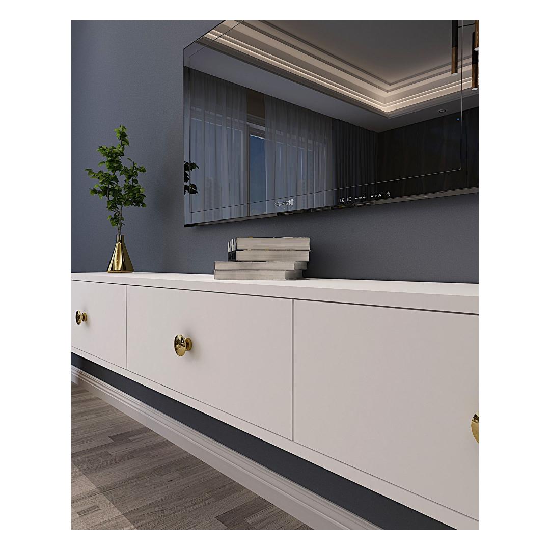 With its clean lines and minimalist design, this TV stand will instantly elevate the look of your living room or entertainment area. The white color adds a touch of elegance and sophistication to any space, while the 18mm thick melamine coated particle board ensures durability and longevity.