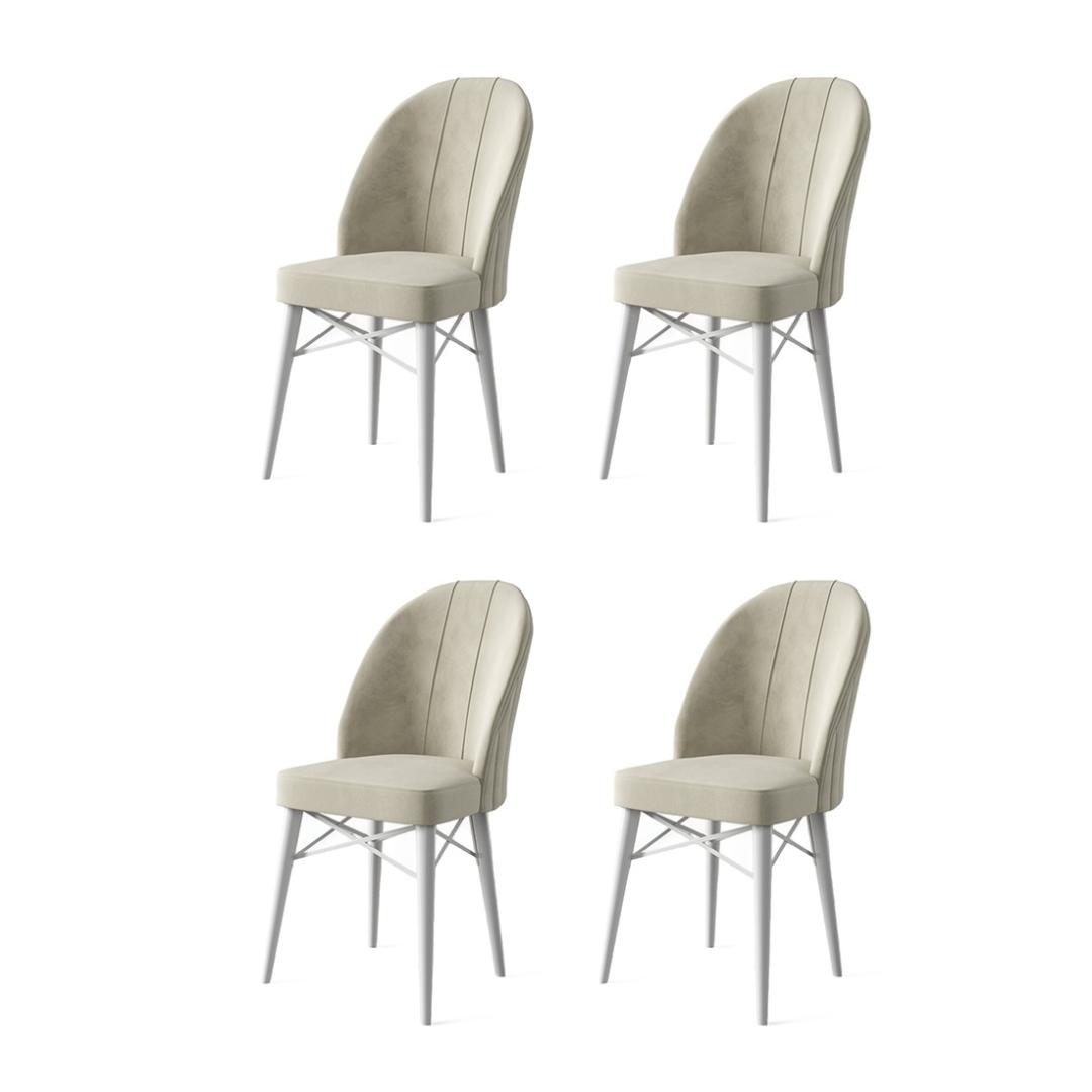 Transform your living space with our stunning Chair Set, designed to bring comfort and style to your home. Made with a 100% metal frame and luxurious Babyface fabric, this set of four chairs is the perfect addition to any room. The elegant cream and white colors will effortlessly complement any decor, while the wooden legs add a touch of sophistication.