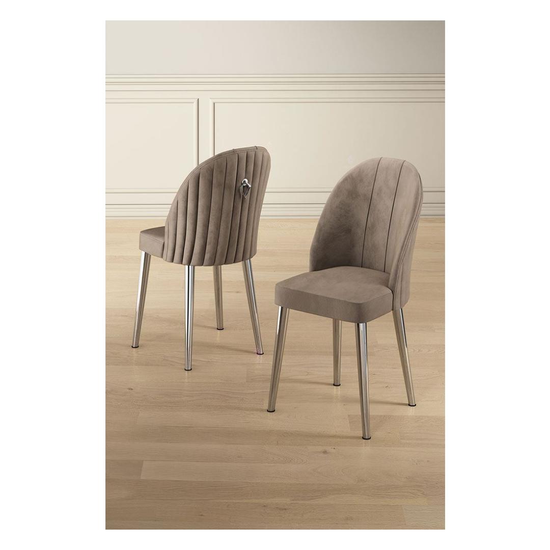 Transform your dining space into a stylish and inviting haven with our stunning Chair Set. Crafted with a 100% metal frame and luxurious Babyface fabric, these chairs exude elegance and sophistication. The sleek design and modern color palette of Cappuccino and Chrome will instantly elevate the look of your home.