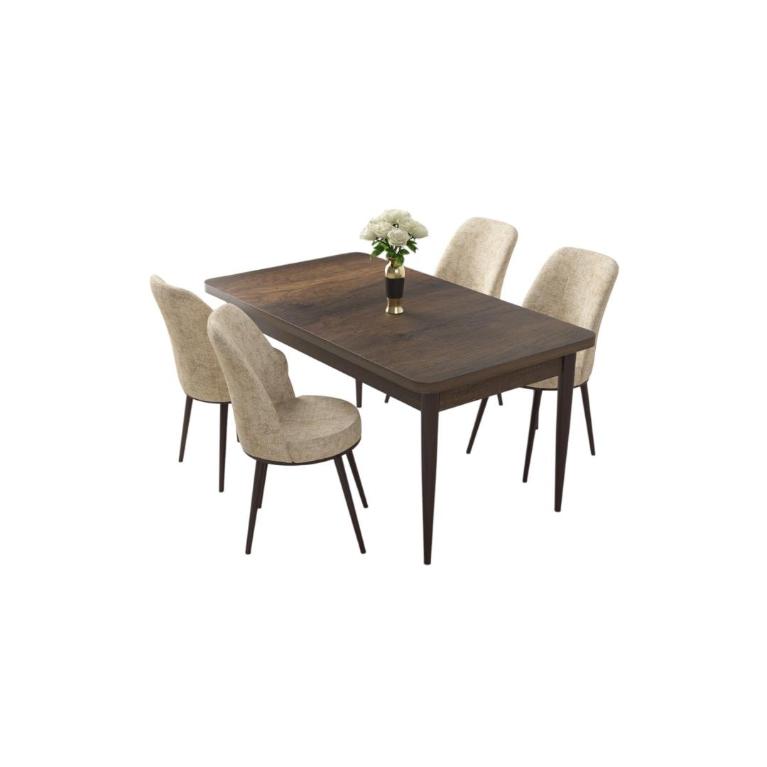 Transform your dining room into a stylish and inviting space with our 5-piece Dining Table & Chairs Set. Made with 100% melamine coated chipboard and sturdy metal legs, this set is not only durable but also exudes a modern elegance that will elevate your home decor.