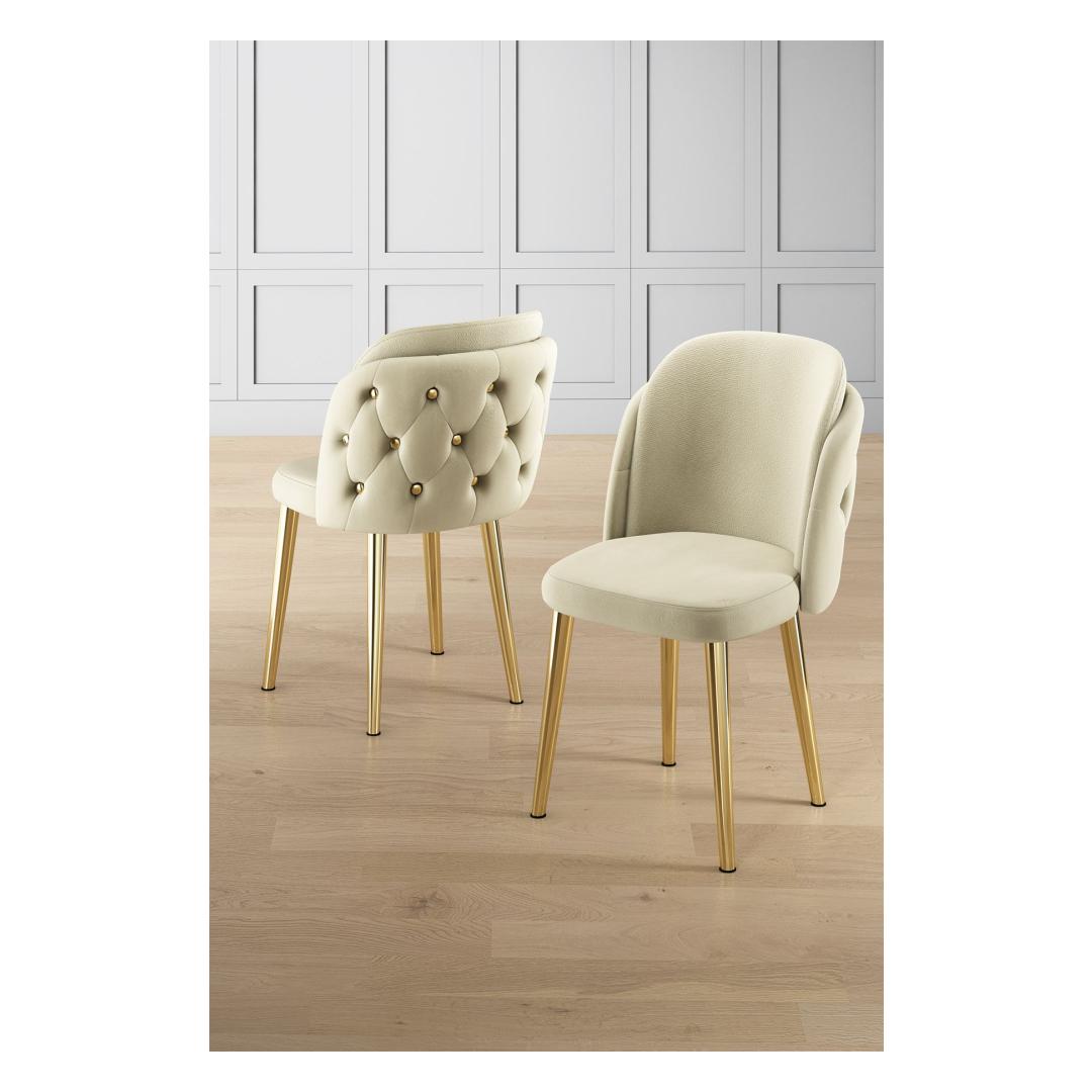 The cream and gold color combination adds a touch of glamour to your space, making these chairs a stylish addition to any modern home. The metal legs provide a sleek finish and enhance the overall aesthetic of the set.