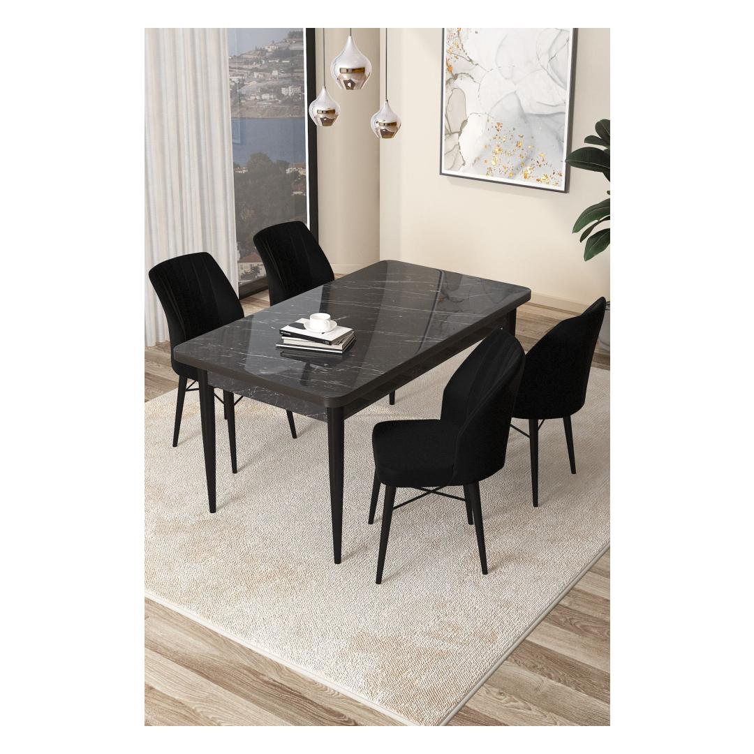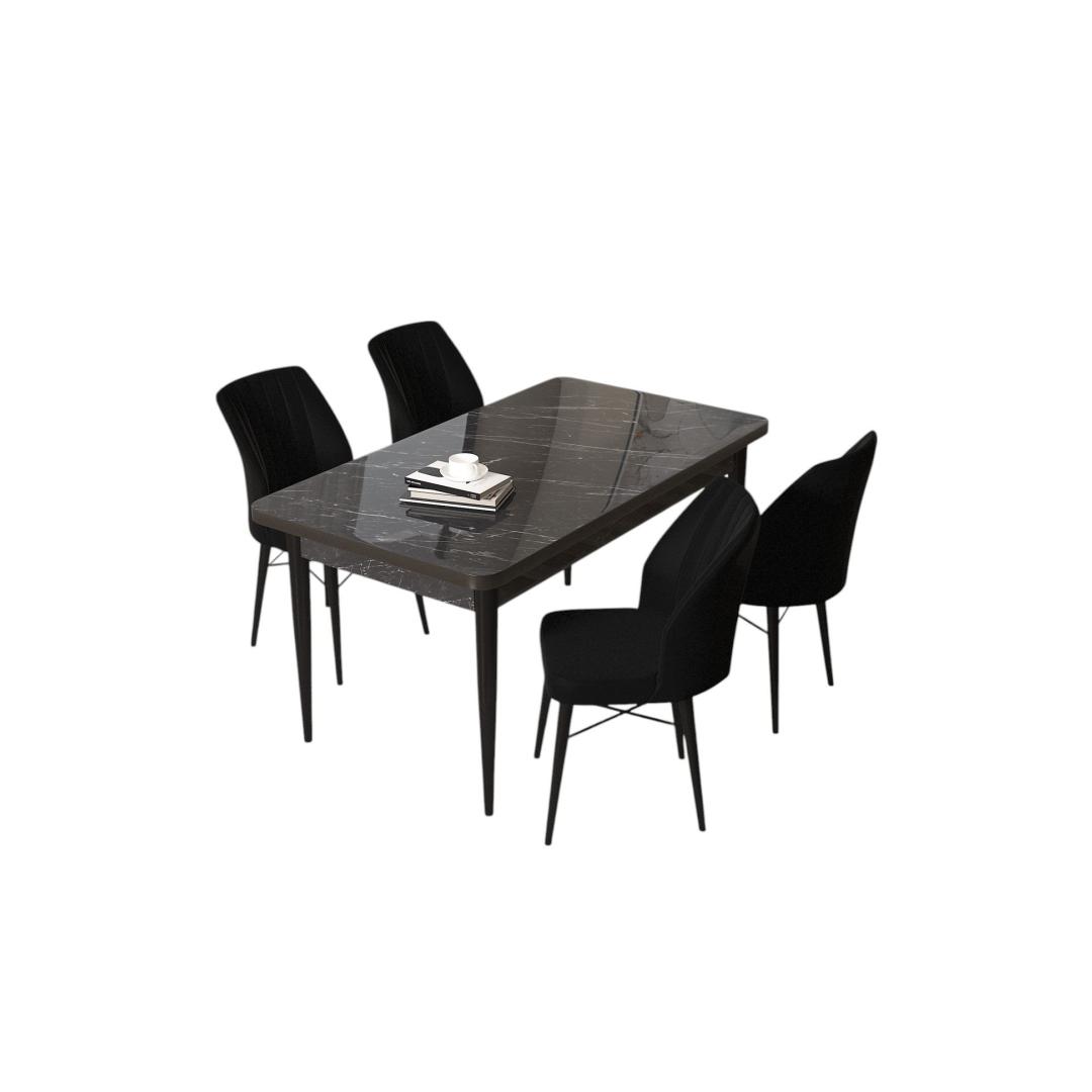The set features a sophisticated combination of black marble and black colors, adding a touch of modernity to your dining area. Whether you're hosting a dinner party or enjoying a quiet meal with your loved ones, this set will enhance the ambiance of your space. Don't miss out on this opportunity to upgrade your dining room with our stunning Dining Table & Chairs Set.