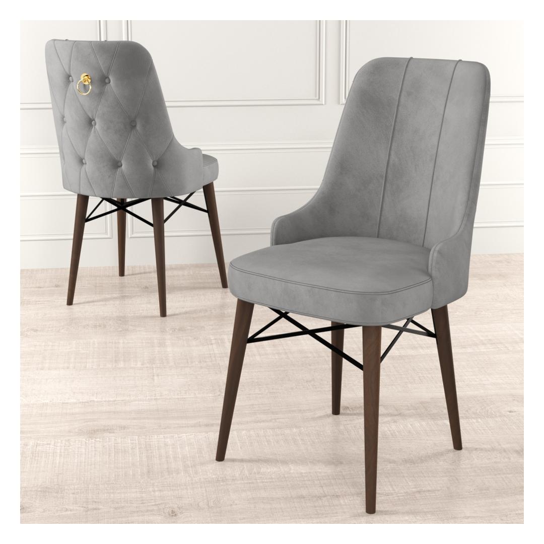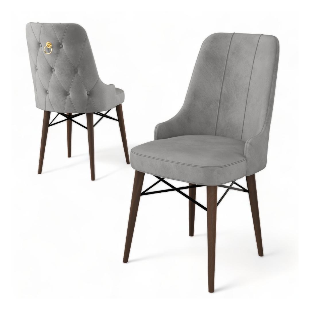 Transform your dining room into a luxurious and inviting space with our exquisite Chair Set. Crafted with a 100% metal frame and premium Babyface fabric, these chairs exude elegance and sophistication. The sleek design and neutral color palette of grey and brown make them versatile enough to complement any decor style.