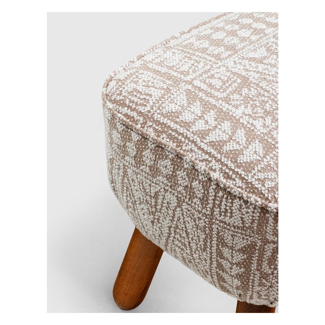 Indulge in luxury and comfort with our exquisite Tuffet, crafted with 100% beech wood frame and woven fabric for a touch of elegance in your home. The warm walnut legs add a touch of sophistication to this timeless piece.