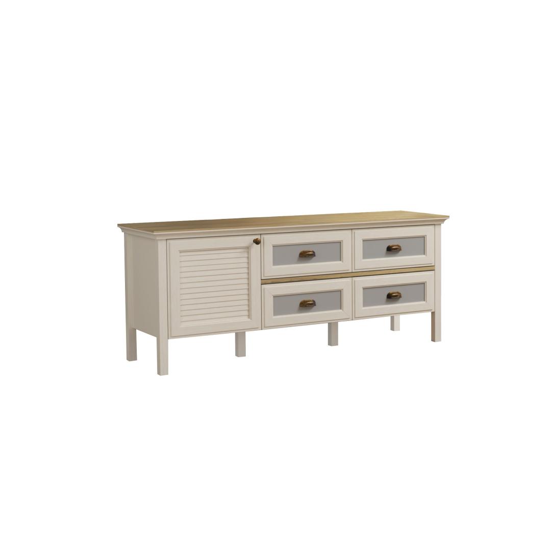 With a width of 149.6 cm, height of 61.6 cm, and depth of 44.2 cm, this TV stand offers ample space for your television and other entertainment essentials. The MDF profile legs and metal handles add a touch of sophistication to the overall design, while the cream, oak, and grey colors create a modern and chic look.