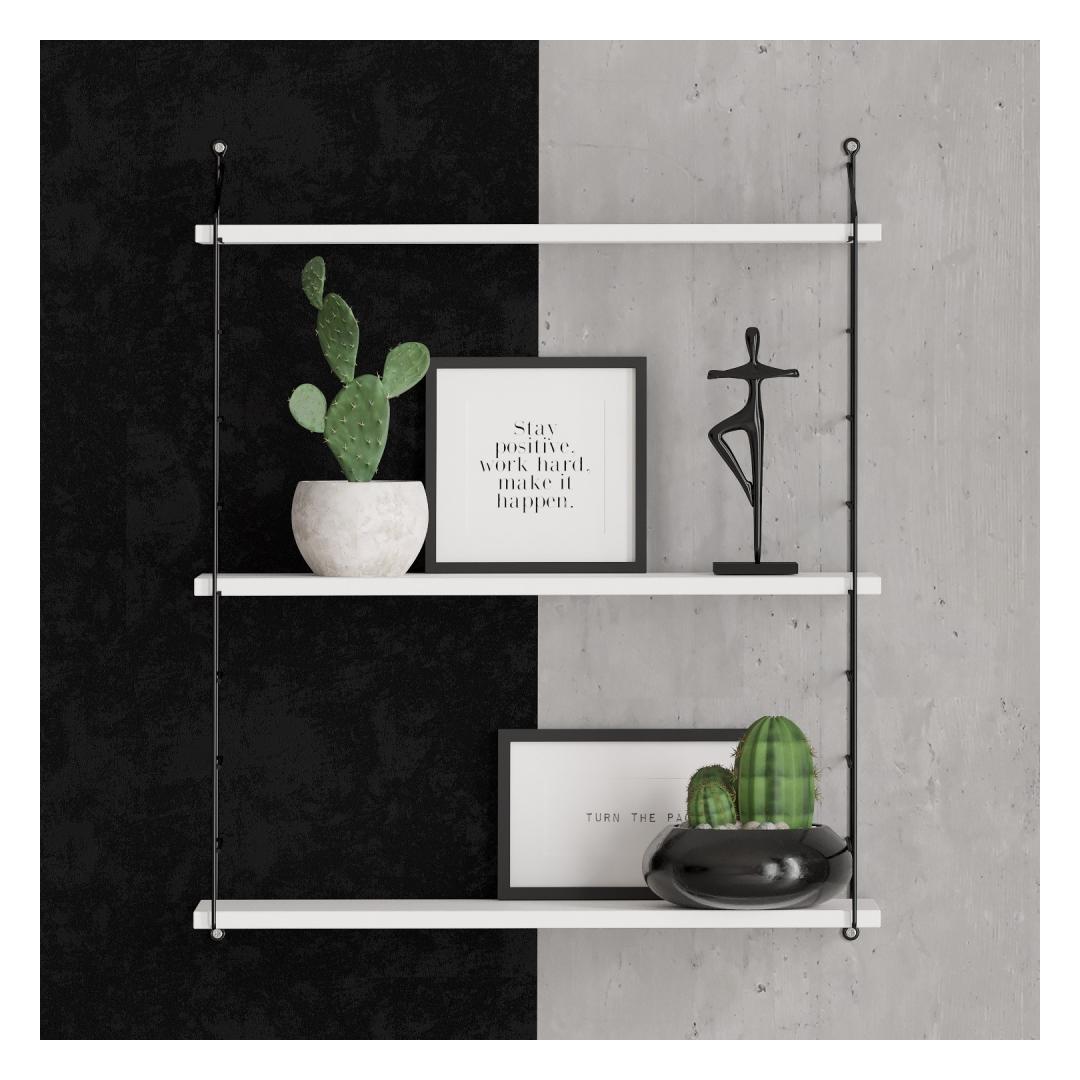 The wall shelf features a clean and crisp white color, adding a touch of elegance to any space. Its neutral tone seamlessly blends with any existing decor, making it a versatile choice for any room in your home or office.