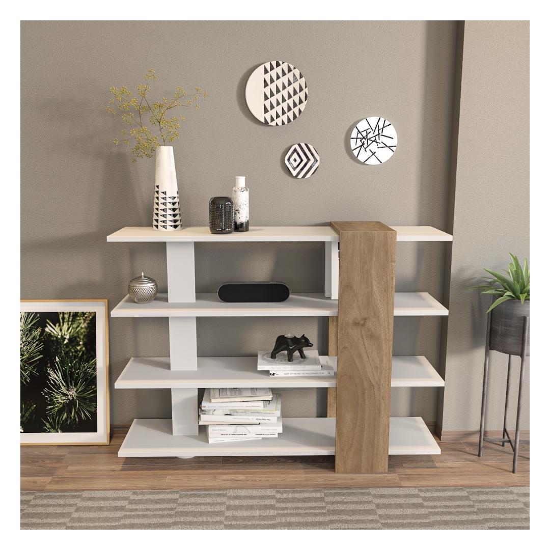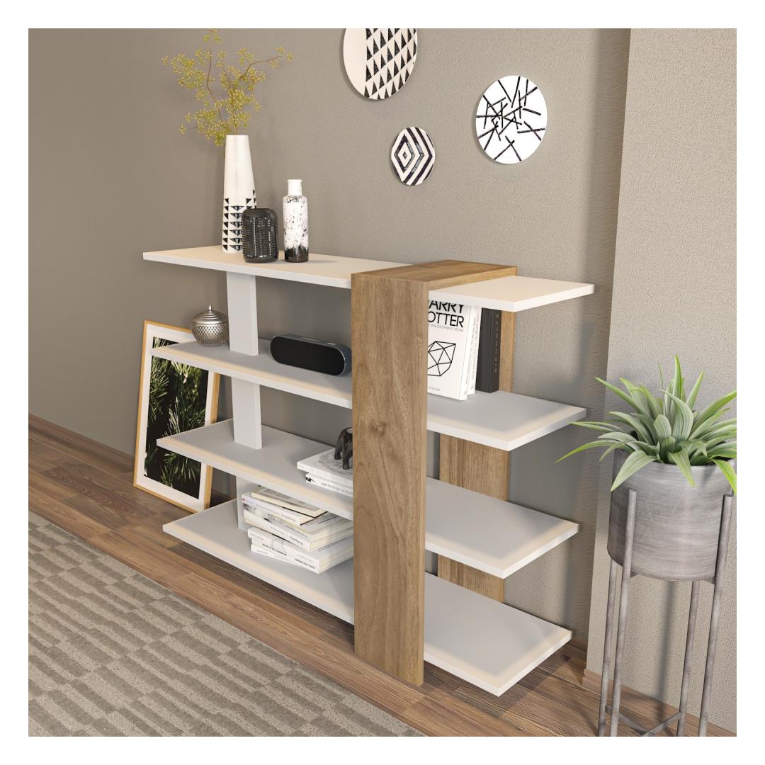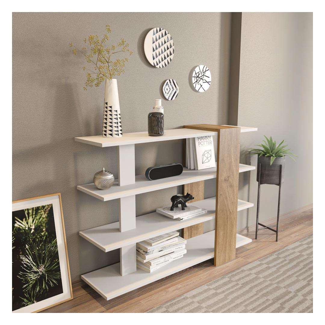 Raamaturiiul Nur - White, Walnut
