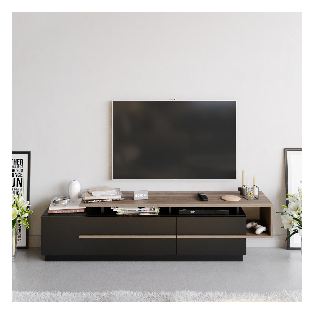 Upgrade your living space with our modern and stylish TV stand. With its ample storage space, versatile design, and striking color combination, this stand is the perfect addition to any home. Don't miss out on this opportunity to enhance your entertainment area.