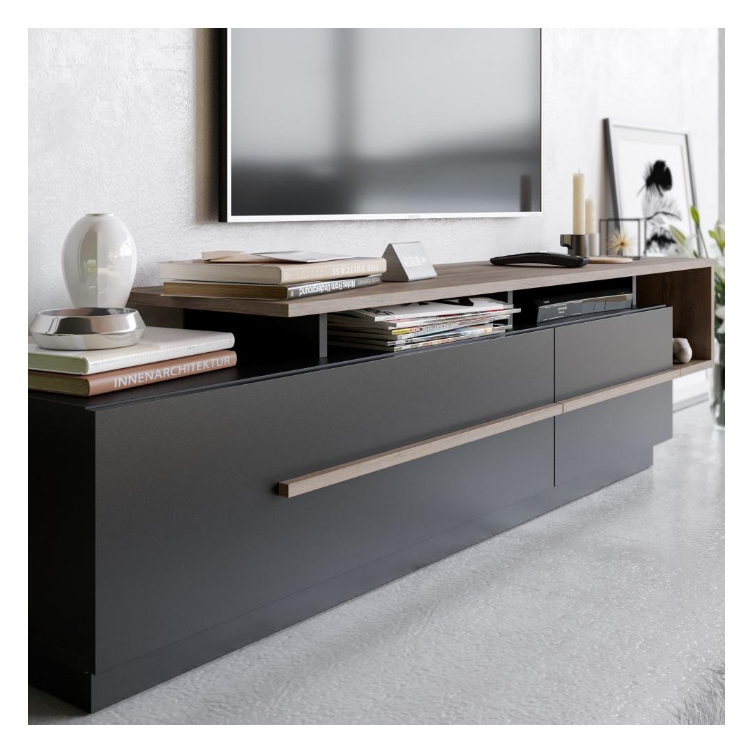Not only does this TV stand offer style, but it is also highly practical. It can be fixed to the wall, providing stability and ensuring the safety of your devices. The stand's dimensions of 180 cm in width, 46.4 cm in height, and 38.9 cm in depth make it suitable for a variety of room sizes.
