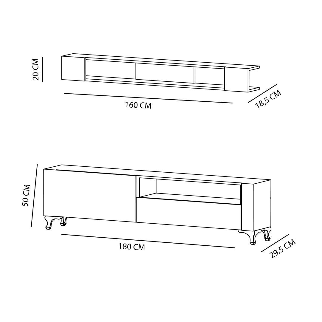 • TV Unit Size: Width: 180 cm, Height: 50 cm, Depth: 29.5 cm