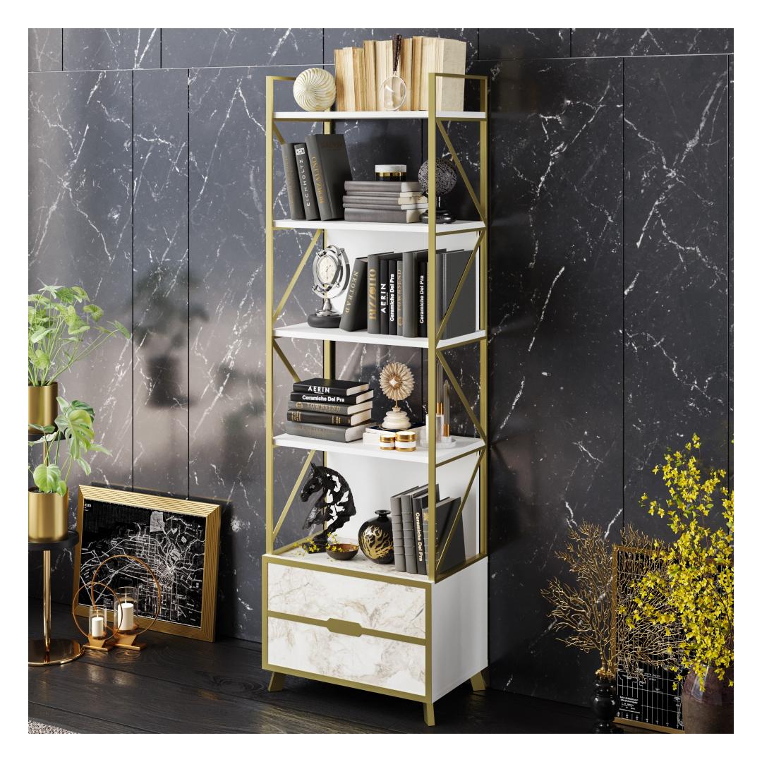 Looking to add a touch of elegance and sophistication to your living space? Look no further than our modern and glamorous bookshelf. With its sleek design and marble-inspired finish, this bookshelf is sure to become the centerpiece of any room.