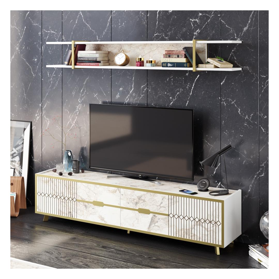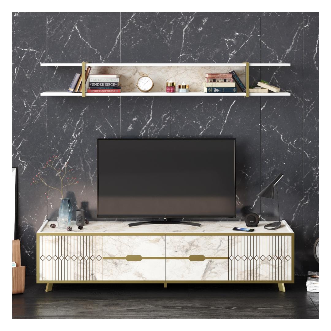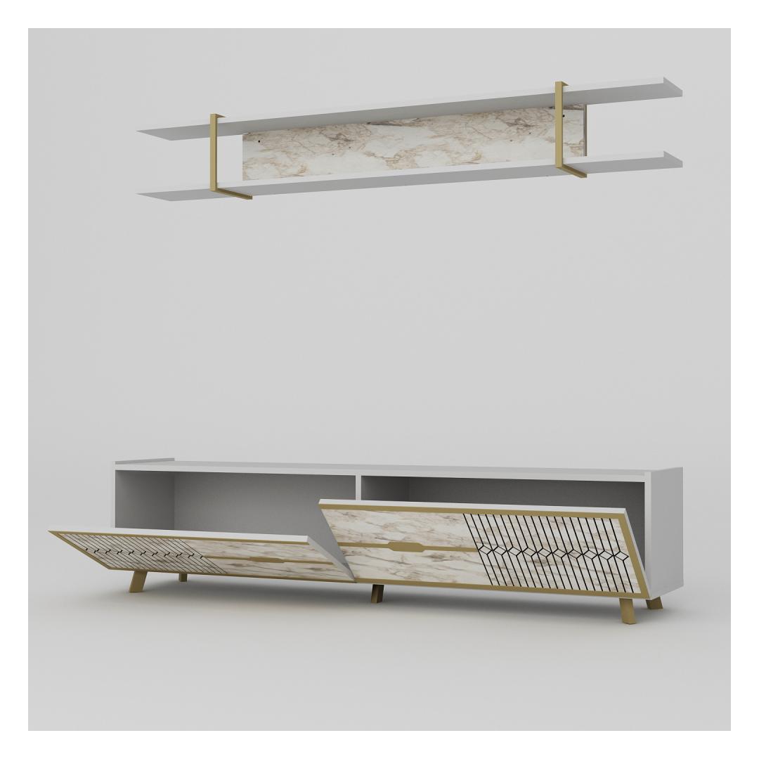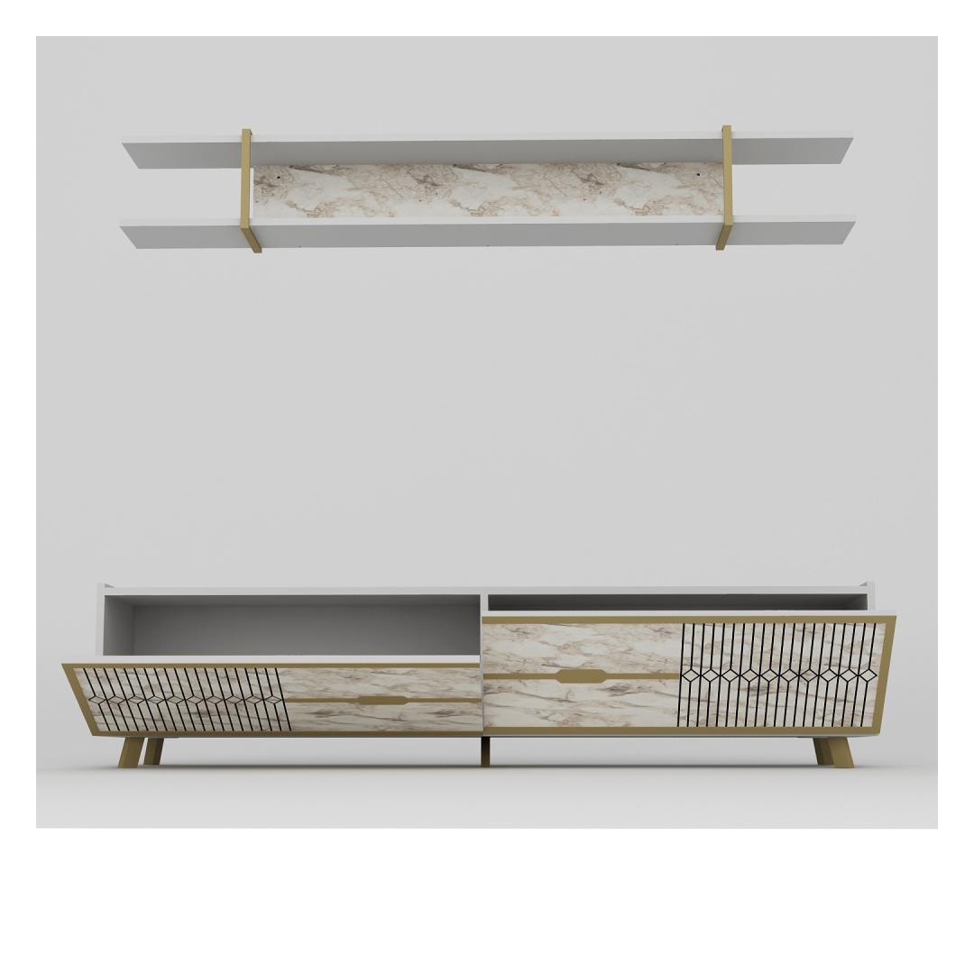 With its sleek and contemporary design, this TV unit will instantly become the centerpiece of your living space. The white color adds a touch of sophistication, while the marble accents give it a unique and luxurious look.