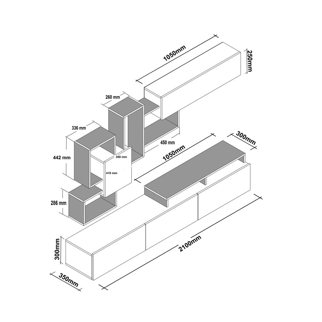 • TV Unit Size: Width: 210 cm, Height: 30 cm, Depth: 35 cm