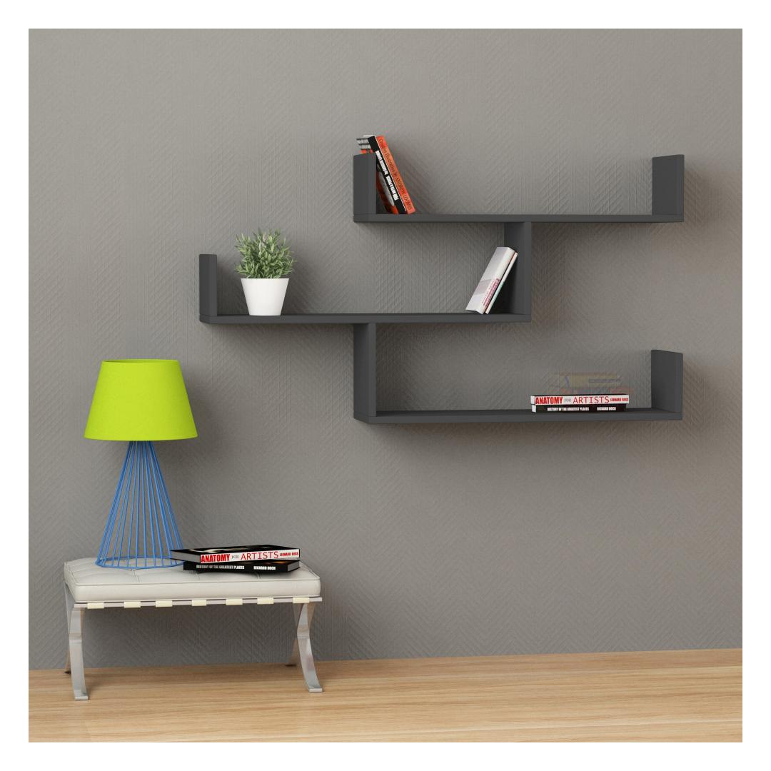 With numerous shelves, this wall shelf offers plenty of space to showcase your favorite books, decorative items, or cherished family photos. Its plain, solid anthracite color adds a contemporary touch to your home decor, making it the perfect addition to any room.