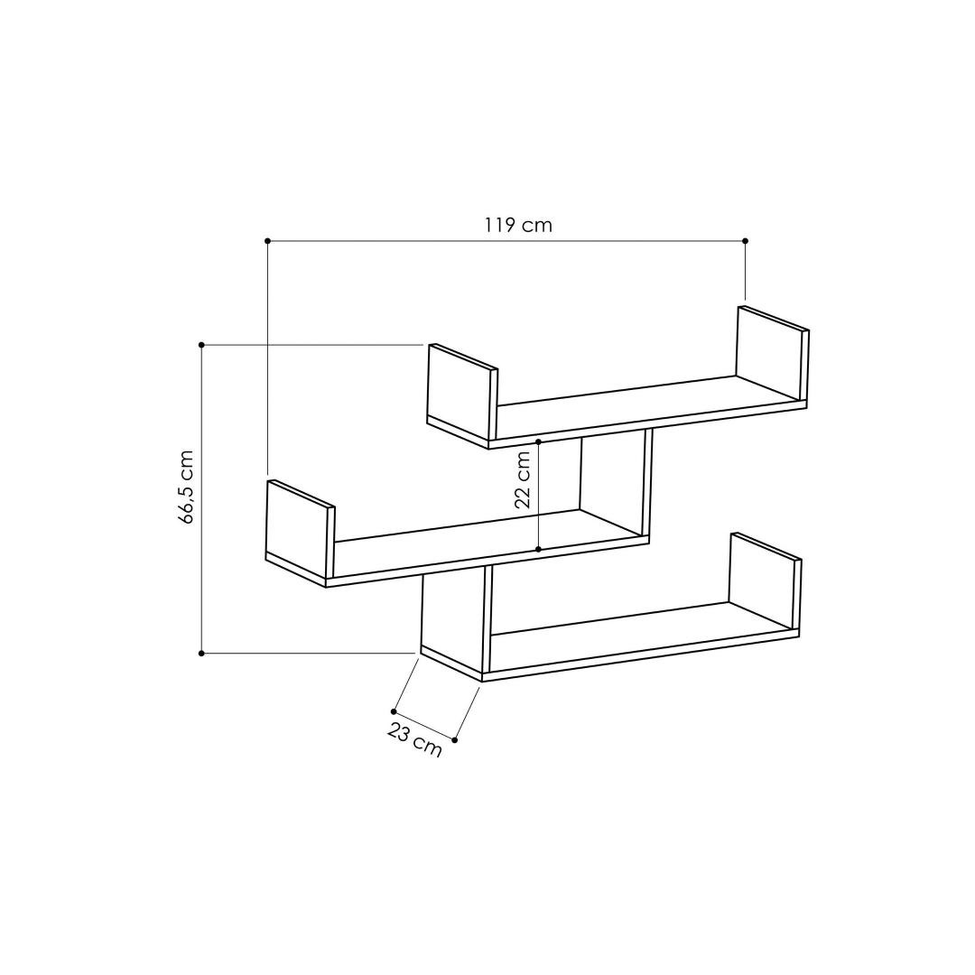 With its generous dimensions of 119 cm in width, 66.5 cm in height, and 23 cm in depth, this wall shelf offers plenty of space to display your favorite books, decorative items, or family photos. The multiple shelves provide ample storage options, allowing you to keep your belongings organized and easily accessible.