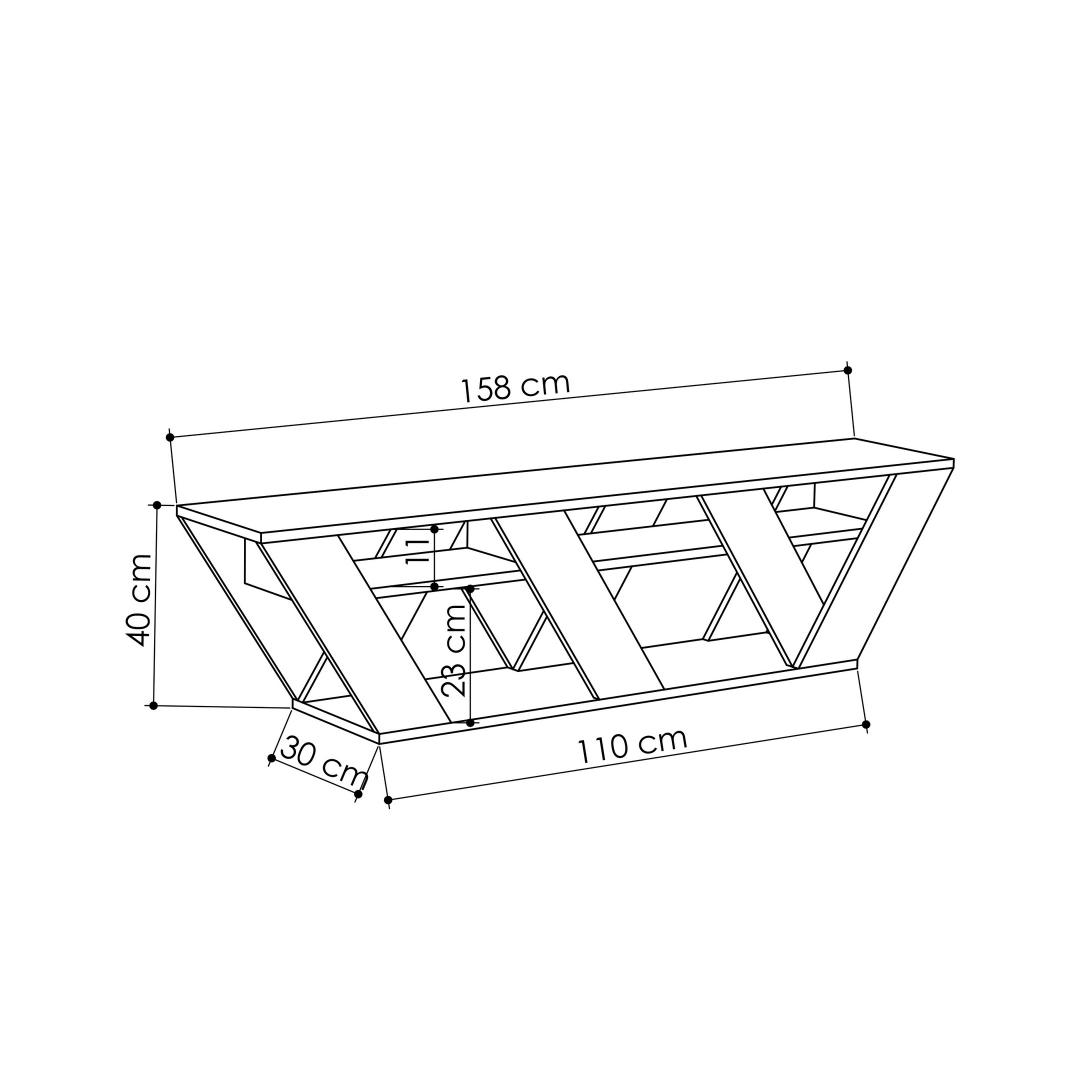 This TV stand can be easily fixed to the wall, saving valuable floor space and creating a clean and streamlined look. Its compact dimensions of 158 cm in width, 40 cm in height, and 30 cm in depth make it suitable for any size of living room or entertainment area.